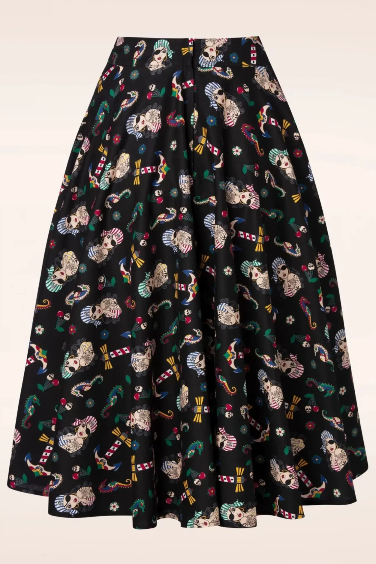 “Ahoy, Me Hearties!” Deze Anchor Pin Up Swing Skirt In Black Is Zo Leuk! Deze Beauty Draag Je Hoog In De Taille Vanwaar Zij Uitloopt In Een Vrolijke, Zwierige Swing Rok Voorzien Van Handige Zijwaartse Steekzakjes. Uitgevoerd In Een Luchtige, Zwarte Katoenmix (Stretcht Amper!) Met Een Kleurrijke Sailor Print. “Yo Ho Ho And A Bottle Of Fashion!” 😉