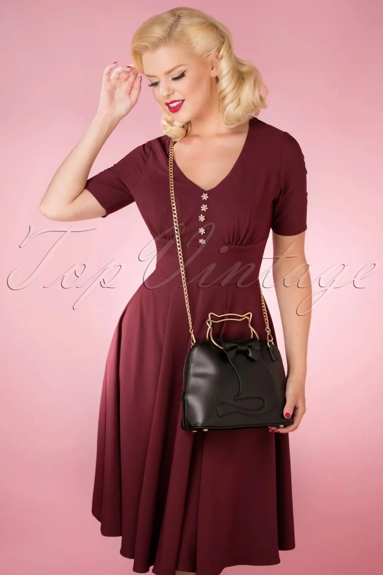 Een Kat In De Zak Kopen?! Nee, Want Van Deze 50S Dixie Cat Bag In Black Krijg Je Zeker Weten Geen Spijt! Deze Handtas Is Uitgevoerd In Stevig Zwart ‘Faux’ Leder, Met Aan De De Voorkant Een Kat Applicatie Voorzien Van Een Schattige Strikje, Afgewerkt Met Goudkleurige Handvatten Die De Kop Van De Kat Voorstellen… Purrrfection! Deze Tas Wordt Bovendien Geleverd Met Een Afneembare Goudkleurige Schakelketting Waardoor Je Haar Op Meerdere Manieren Kunt Dragen. Zie Jij Jezelf Al Lopen Met Deze Kittige Tas Aan Je Arm?
