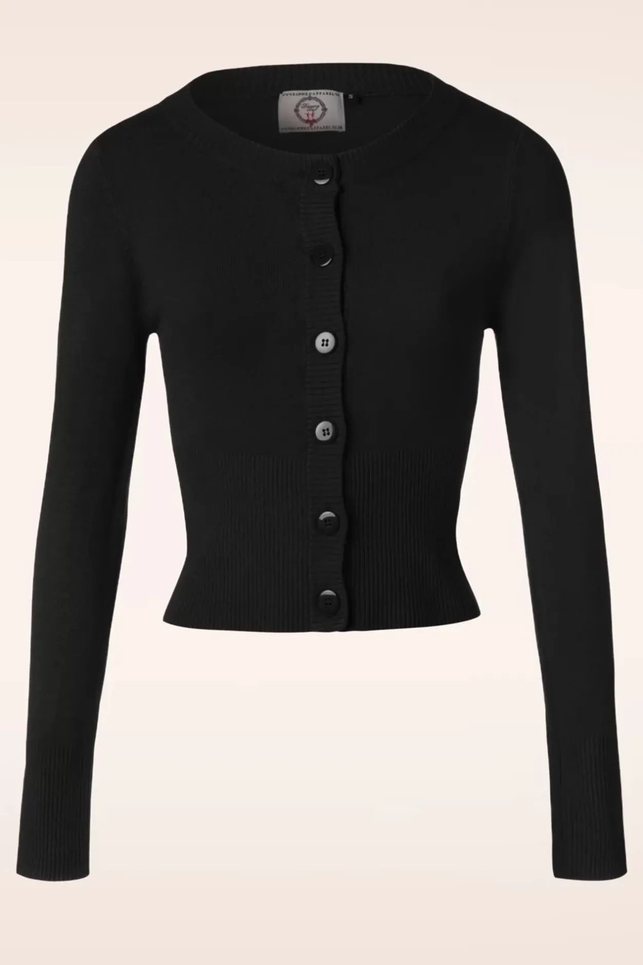 De 50S Dolly Cardigan In Black Maakt Met Iedere Outfit Een ‘Perfect Match’! Dolly Is Klassiek, Comfortabel Én Speels. Deze Cardigan Heeft Een Elegante Ronde Halslijn, Lange Mouwen En Grote Glimmende Knopen. Uitgevoerd In Een Fijngebreide, Zwarte Stof Met Een Heerlijke Stretch Voor Een Mooie Aansluitende Pasvorm. De Combinatiemogelijkheden Zijn Eindeloos!