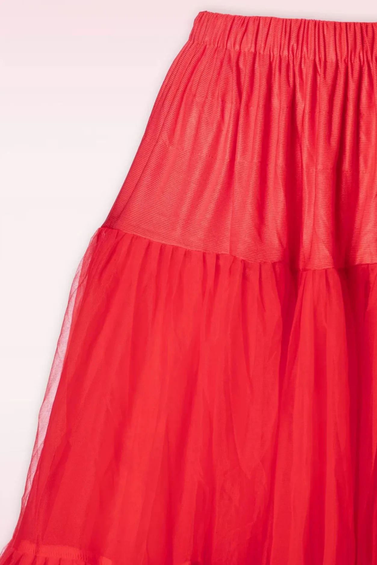 ”Behind Every Great Twirl Is A Trusty Petticoat!” De 2 Lagen Stof Zorgen Voor Extra Volume, Bewegen Gracieus Met Je Mee En Zijn Afgezet Met Speelse Ruches Aan De Onderzijde. De Bovenkant Is Uitgevoerd In Felrood Tule En De Onderrok Is Gemaakt Van Een Glanzende Sateen. Afgewerkt Met Een Elastieken Band. Deze Petticoat Geeft Iedere Swing Jurk Net Dat Beetje Extra!