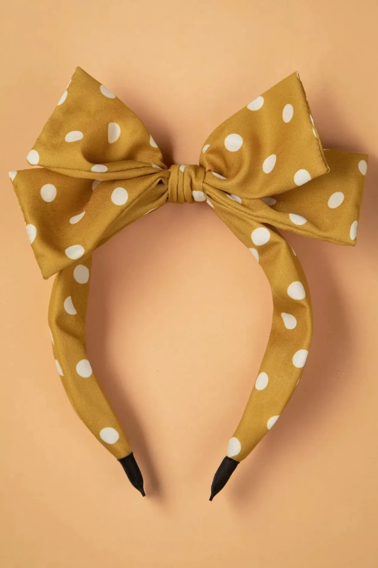 Deze Speelse Magdalen Hairband In Mustard Is Een Echte Must-Have Voor Het Komende Seizoen! Rockabella’s En Pin-Up Girls Opgelet… Met Deze Brede Diadeem Creëer Jij De Leukste Kapsels In Een Handomdraai! Uitgevoerd In Een Mosterdgeel Stofje Met Witte Polkadots En Een Opvallend Strikdetail, Voorzien Van Een Verstevigde Band. Wow!