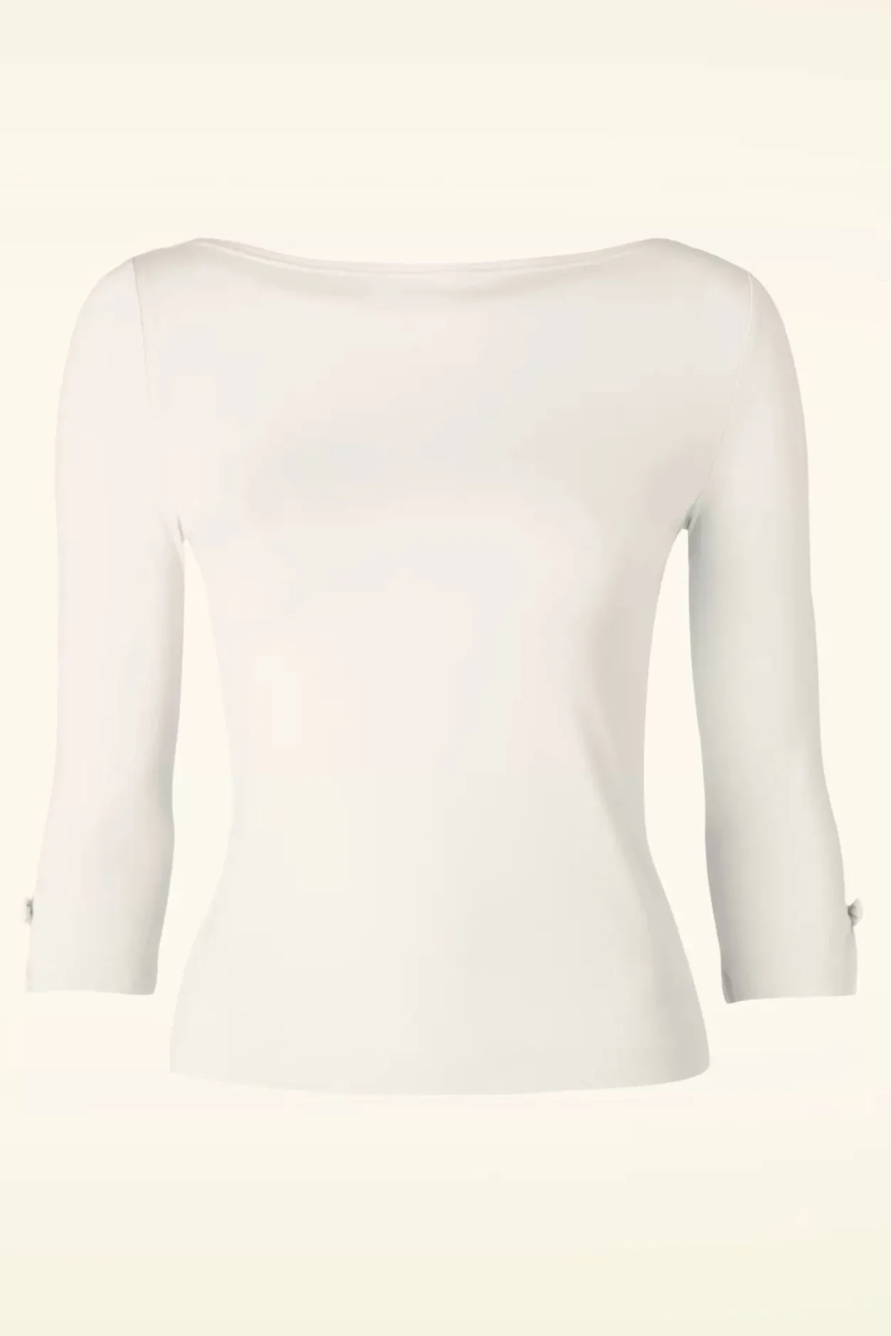Elegant En Schattig Deze 50S Modern Love Top! Eenvoudig Maar Toch Speciaal Door De Lieflijke Details! De Top Heeft Een Mooie Boothals En Mouwtjes Met Splitjes Die Afgezet Zijn Met Kleine Strikjes, Só Cute! Uitgevoerd In Een Heerlijke Soepele, Stretchy Ivoorwitte Viscose Mix Die Zijn Perfecte Pasvorm Zal Blijven Behouden, Zelfs Na Een Aantal Wasbeurten. Een Veelzijdige Classy Top Die Niet Mag Ontbreken In De Kast Van Een Echte Vintage Lady 😉