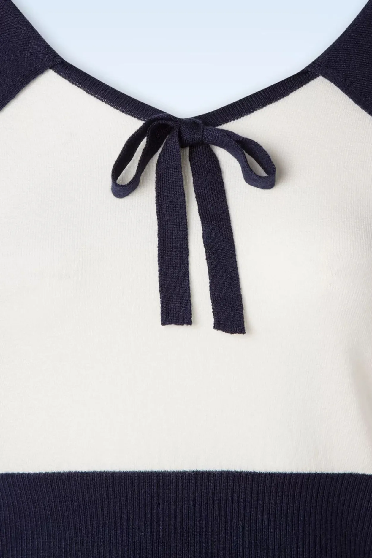 Deze Olivia Jumper In Navy Is Super Schattig! Dit Lieflijke Truitje Heeft Een Elegante V-Hals Met Een Afgerond Kraagje, C-U-T-E! Een Schattig Klein Strikje Zorgt Voor Een Verrassing Aan De Voorzijde En De Brede Ribboord Op Het Lijfje Geeft Je Een Super Flatterend Silhouet. Uitgevoerd In Een Stretchy, Fijngebreide Marineblauwe En Witte Viscosemix Die Heerlijk Draagt. Deze Cutie Mag Je Niet Laten Liggen! 😉