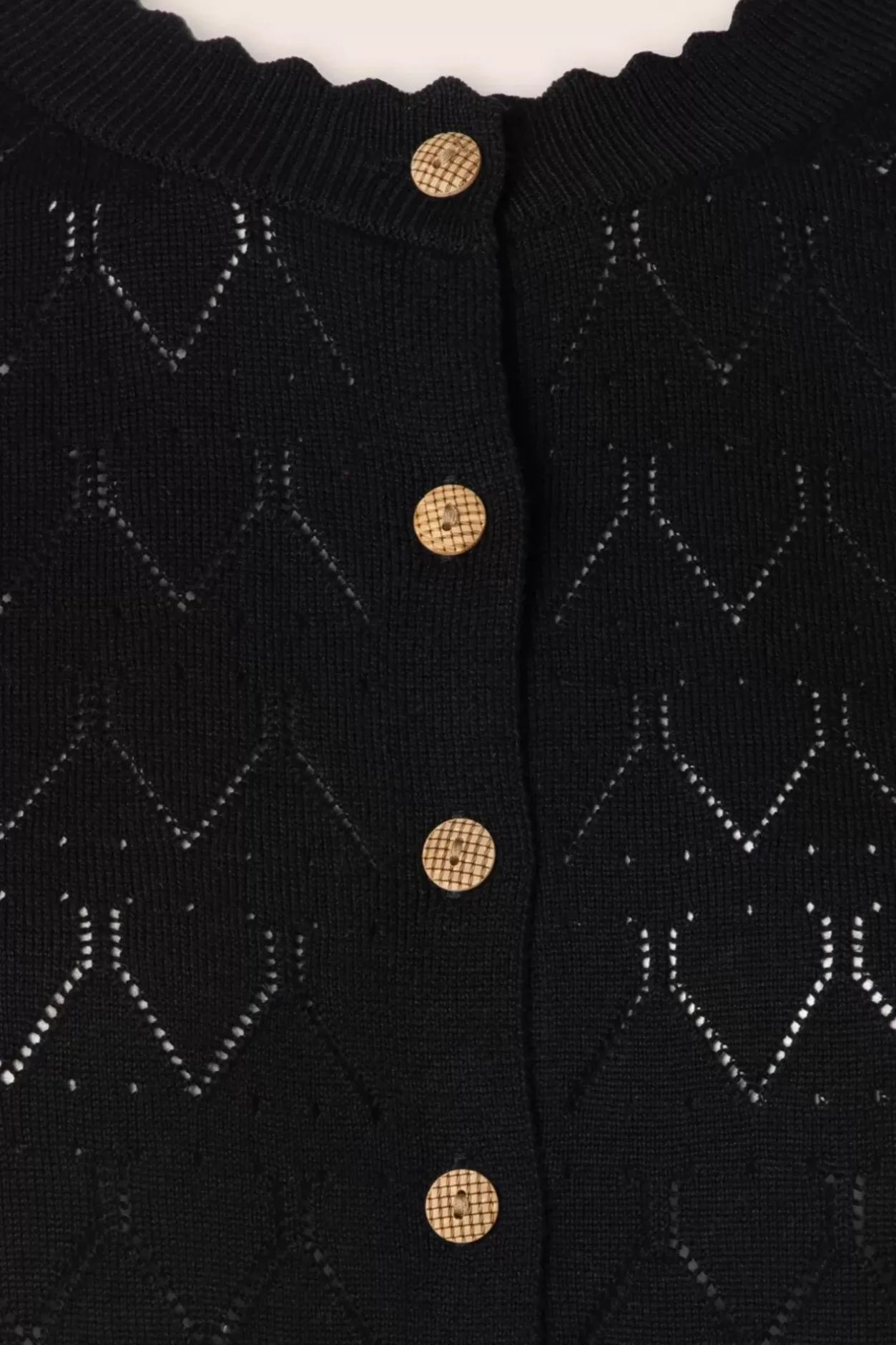 Deze Cute Cardigan Maakt Met Iedere Outfit Een ‘Perfect Match’! Ze Is Uitgevoerd In Een Zachte, Fijn Gebreide Mix Van Viscose En Katoen In Zwart En Is Voorzien Van Een Opengewerkt Ajourpatroon. De Combinatiemogelijkheden Zijn Eindeloos!