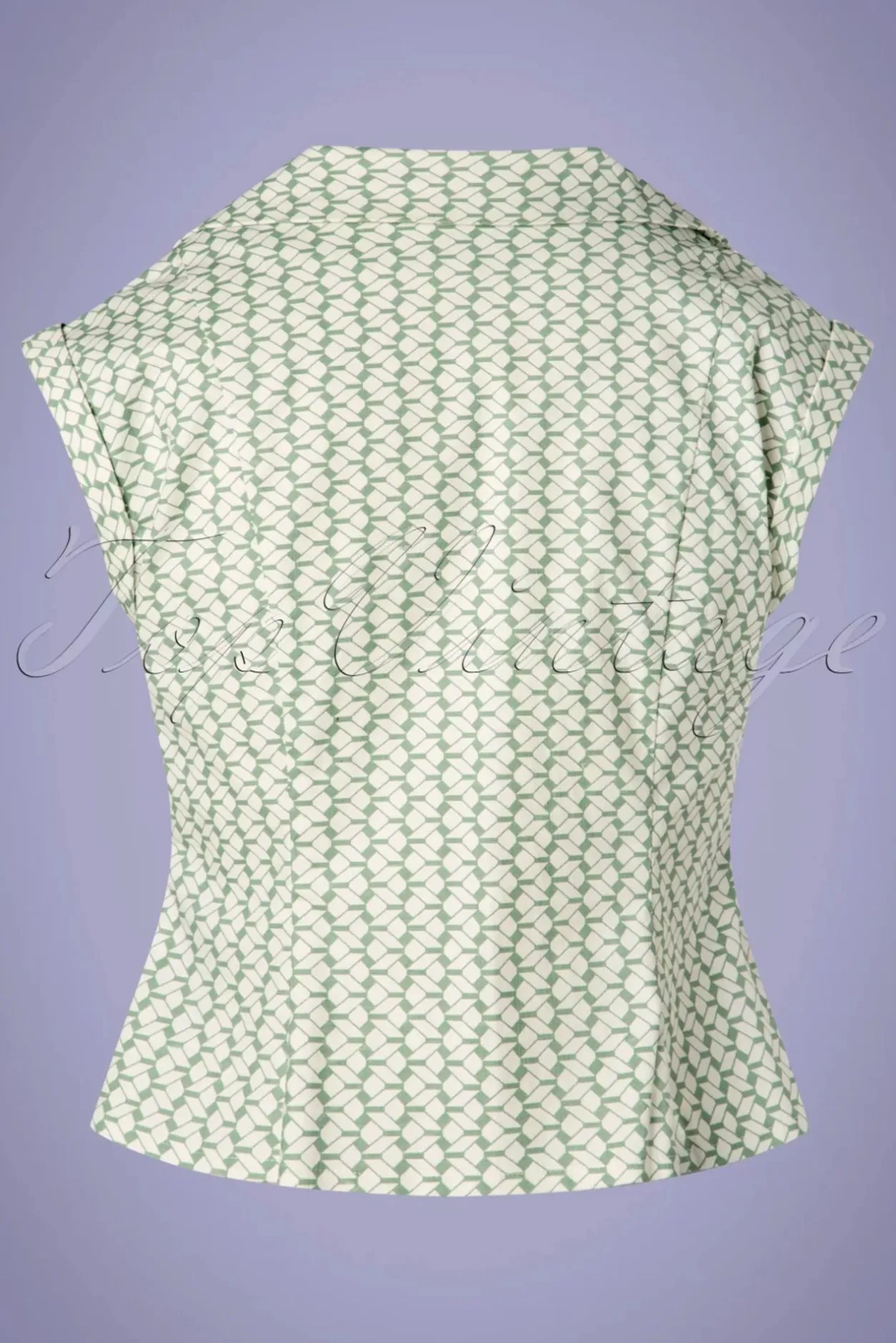 Op Zoek Naar Een Speelse Blouse Voor Al Je Retro Outfits? Dan Is Deze 40S Tina Tile Blouse In Mint De Perfecte Match 😉 Uitgevoerd In Een Stevige Maar Luchtige, Mintgroene Katoenmix Die Licht Stretcht En Voorzien Is Van Een Retroprint In Ivoorwit. Prachtig Te Combineren Met Een Van Onze High Waist Broeken Of Met Een Kokerrok Voor Een Ultieme Classy Look!