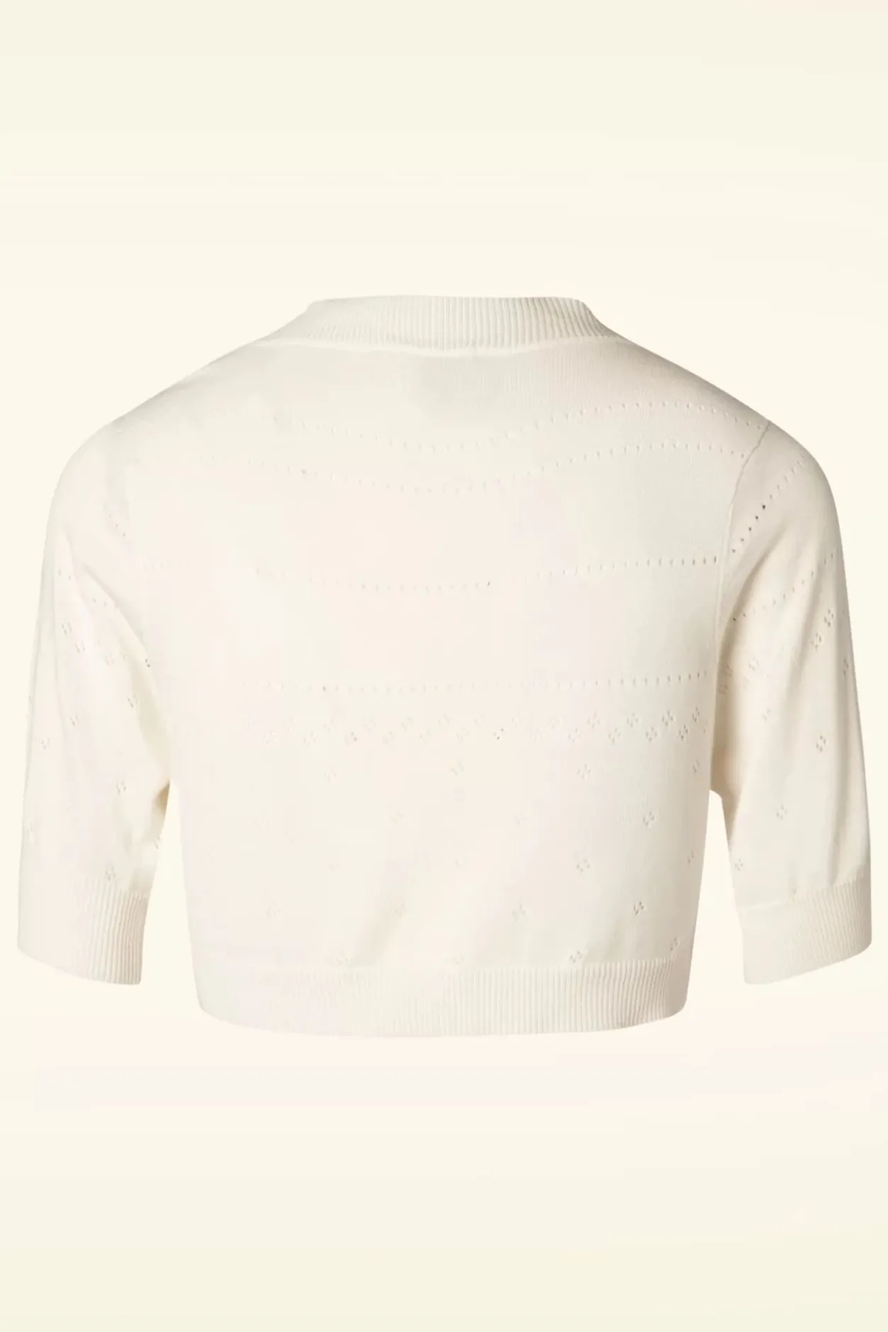Verrijk Je Retro Outfit Met Deze 50S You Are Mysunshine Bolero In Ivory! Ook In De Zomer Kan Het In Deavond Nog Wat Fris Aanvoelen Maar Je Hebt Je Mooiste Zomerjurk Aan En Een Jasjedoet Daar Afbreuk Aan, Wat Nu? Nou, Deze Te Leuke Bolero Aanschaffen Dus!Uitgevoerd In Een Zachte, Stretchy, Fijngebreide Mix Van Viscose En Katoen Ineen Ivoorwitte Kleur En Voorzien Van Een Schattig Opengewerkt Patroon. “You Are My Sunshine, My Only Sunshine, You Makeme Happy When Skies Are Gray” 😉