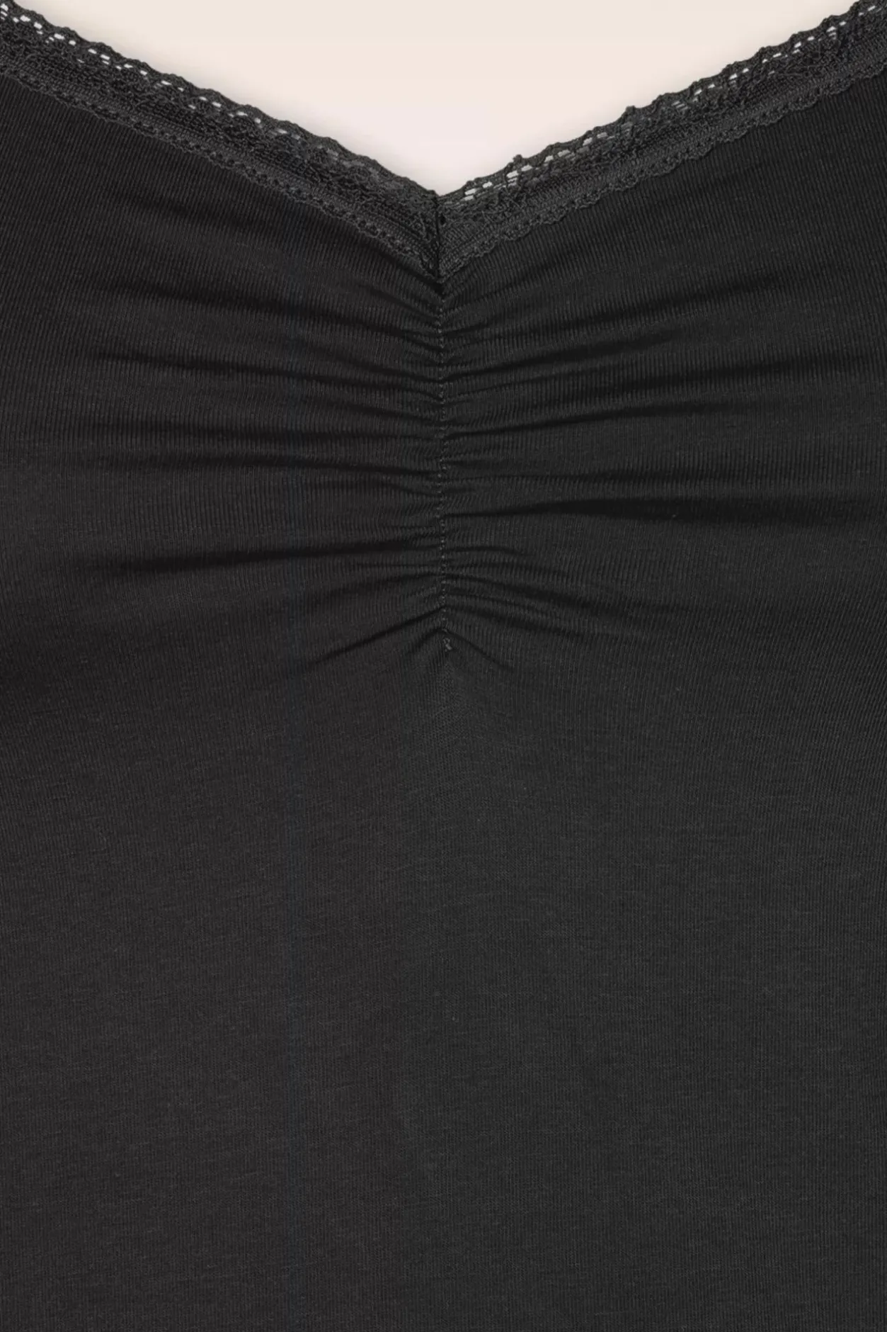 Zie Jij Alle Fantastische Combi’s Met Deze Top Al Voor Je?! De Diamantvormige Halslijn Is Afgewerkt Met Een Kanten Biesje En Zorgt Ervoor Dat Je Een Prachtig Decolleté Laat Zien. Uitgevoerd In Een Stretchy, Zwarte Bio Katoenmix Voor Een Mooie Aansluitende Pasvorm. Waar Je Haar Ook Mee Combineert, Ze Zal Alle Outfits Omtoveren In Een Prachtplaatje!