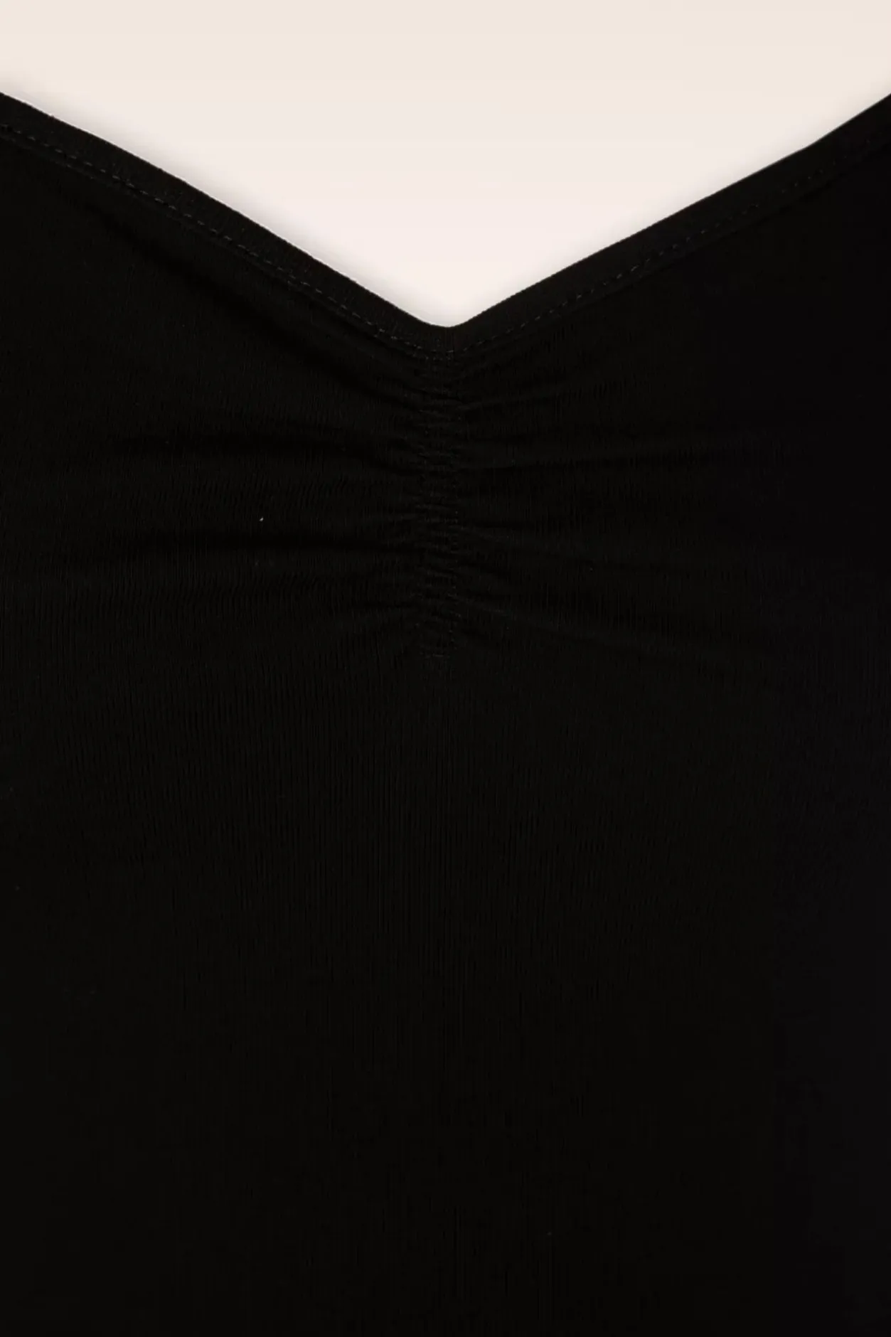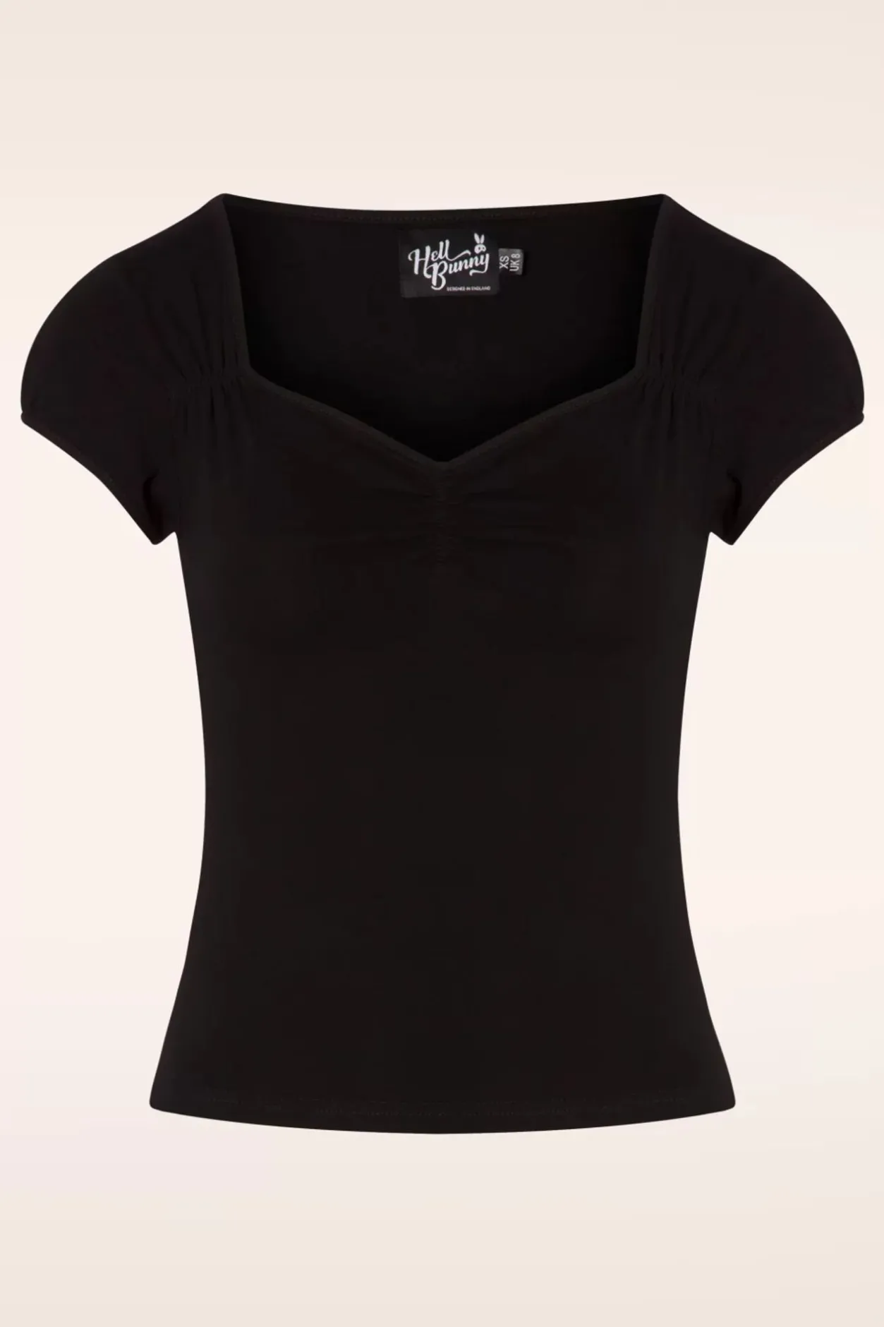 De 50S Mia Top In Black Is Een Veelzijdige Top Inpin-Up Stijl! Ze Heeft Korte Mouwtjes En Een Elegante Diamantvormige Halslijn,Afgewerkt Met Charmante Plooitjes 😉 Uitgevoerd In Een Zachte,Stretchy Zwarte Katoenmix Voor Een Heerlijk Draagcomfort. De Perfecte Top Die Overalmee Gecombineerd Kan Worden!