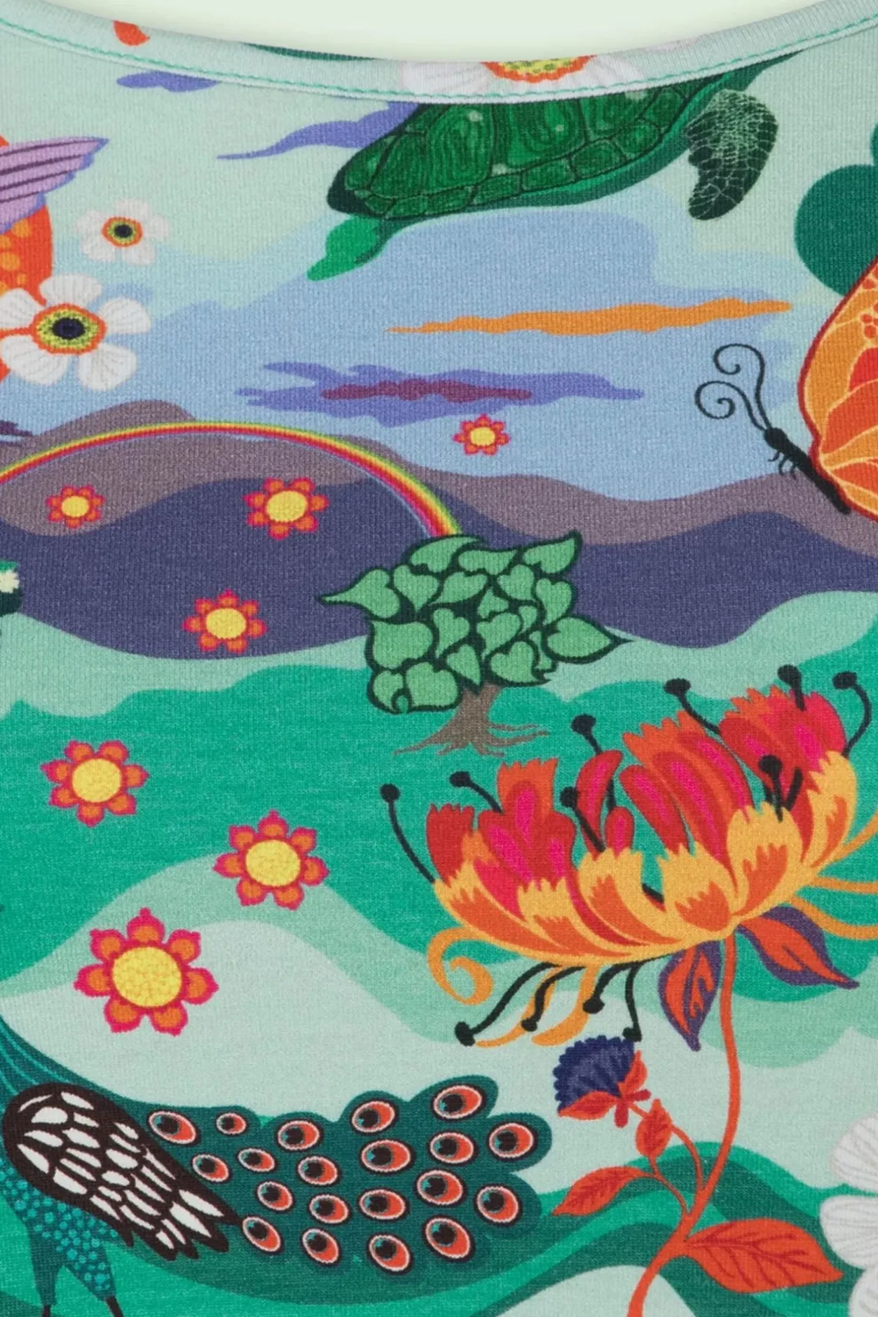 ”Time To Go Retro!” Deze A-Lijn Jurk Is Uitgevoerd In Een Soepele En Stretchy Organische Katoen, Voorzien Van Een Kleurrijke Print.