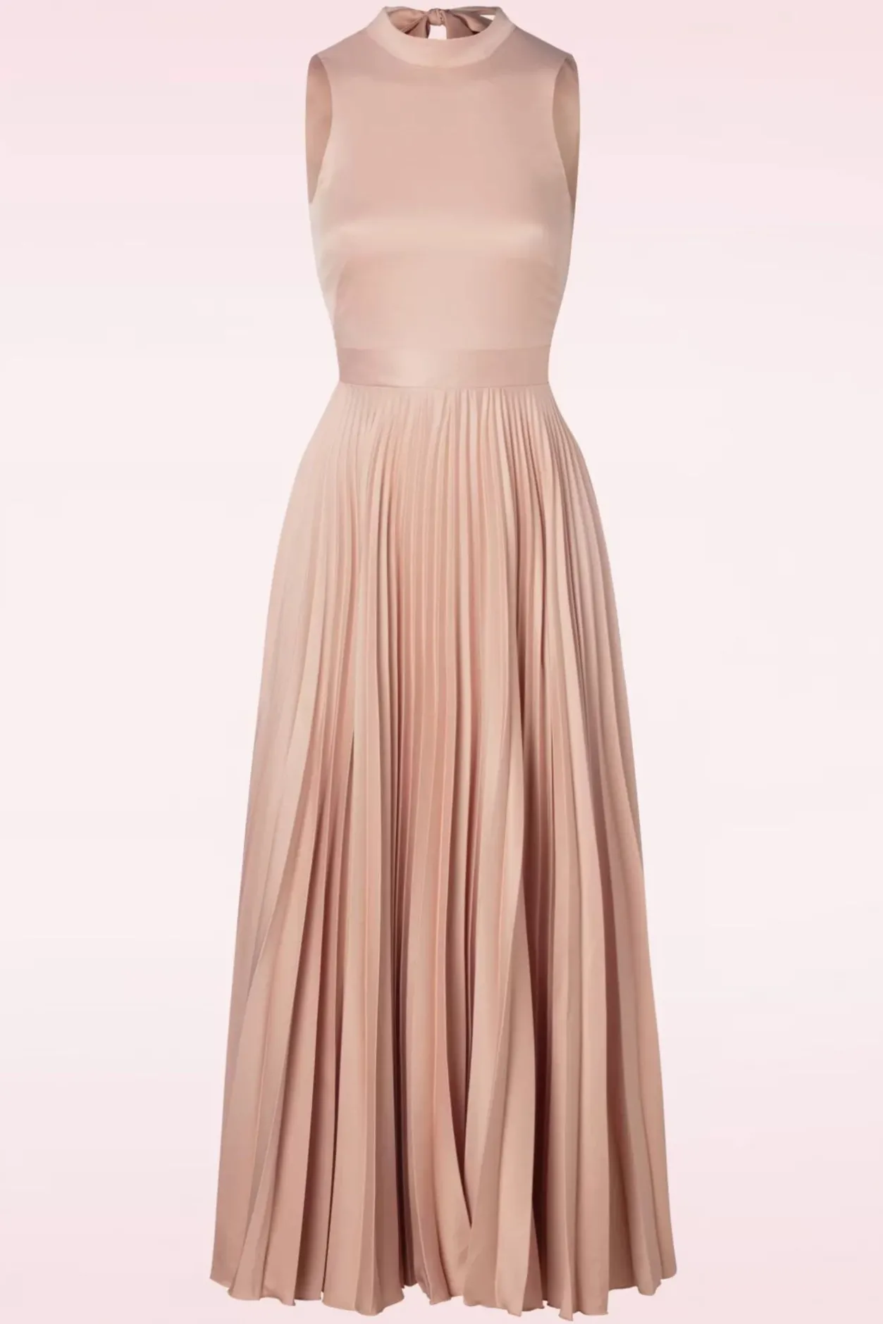 ”Think And Wear Pink!” Maak Een Statement Met Deze Maxi Bruidsmeid Jurk! De Strikbare Haltertop En V-Rug Zorgen Voor Een Elegante En Verfijnde Look En De Maxi Plissé Rok Beweegt Gracieus Met Je Mee En Geeft Jou Een Prachtig Silhouet. Uitgevoerd In Een Luxueuze, Tijdloze, Poederroze Satijnachtige Stof Die Heerlijk Draagt. Bella Is De Perfecte Match Voor Elke Speciale Gelegenheid! 😉