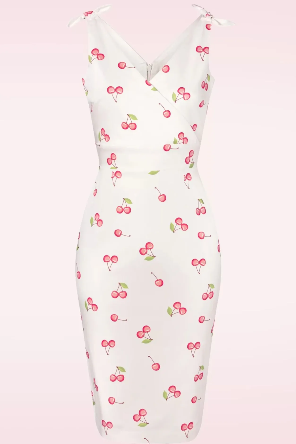 ”Destination? Paradise!” En Of Dat Nu De Franse Riviera Is Of Gewoon Aan De Kust In Eigen Land… Flaneren Doe Je In The Harper Cherry Print Pencil Dress In White Uit De Nieuwe Glamour Bunny Collectie! Een Classy, Body Hugging Pencil Dress Die De ‘sass’ In ‘sassy’ Stopt Met Haar V-Hals, Vaste Overslag En Flirty Strikdetails Op De Schouders. Uitgevoerd In Een Stevige Maar Soepele, Katoenmix Met Lieve Rode Kersjes En Een Hele Lichte Stretch Waardoor Je Rondingen Subliem Tot Hun Recht Komen En Je Zelfvertrouwen Naar Een Ongekende Hoogte Stijgt. ”Jet-Set Your Way Through Summer, Hunnie!”