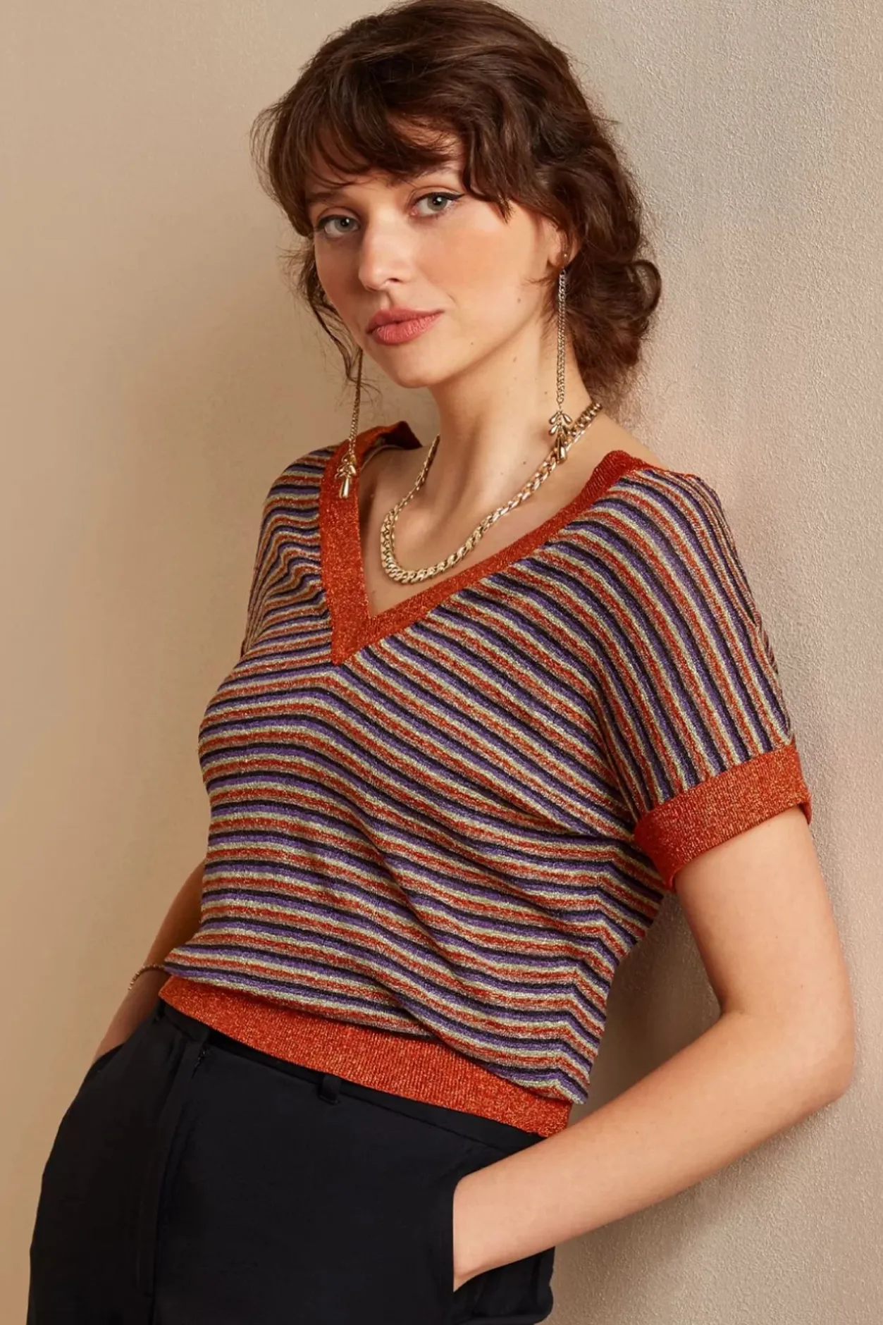 ”stripes And Glitter.. The Ultimate Combination!” Ze Is Uitgevoerd In Een Soepele En Fijn Gebreide Karamel Gekleurd Stofje Voorzien Van Funky Gekleurde Streepjes En Een Ingewerkte Glitterdraad.