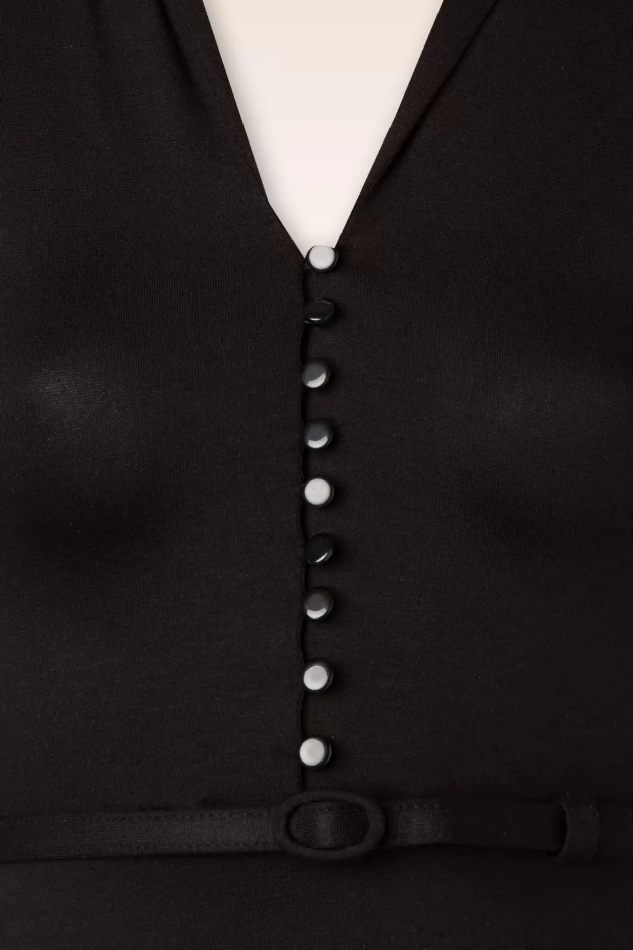 Deze Emmy Ecovero Classic Jurk In Zwart Wil Je Iedere Dag Wel Dragen! Dezejurk Is Speels Maar Toch Heel Vrouwelijk Door Haar Aansluitende Top Metv-Halslijn, Het Sjaalkraagje, De Korte Mouwtjes En De Reeks Knoopjes. Vanuit Het Lijfje Loopt Ze Over In Een Zwierige, Flatterendesemi-Swing Rok. Ze Accentueert Je Taille Nog Eens Extra Door Het Smalle Riempje.Uitgevoerd In Een Heerlijke Soepele, Stretchy, Zwarte Ecovero Viscosemix In Een Klassieke Zwarte Kleur. L-O-V-E!