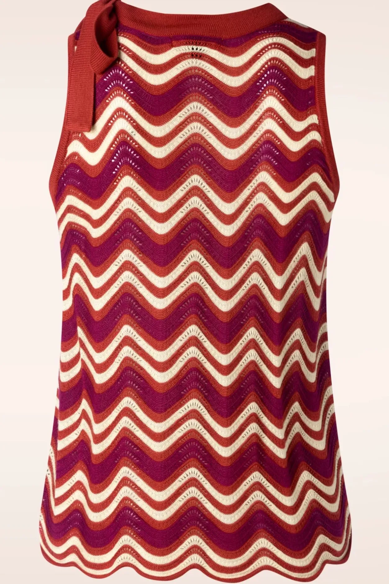 Grooveland Is Seventies At Its Best! Ze Heeft Speelse Strikbanden, Een Geschulpte Bies En Is Uitgevoerd In Een Gebreide, Zachte Viscose Met Een Opengewerkt Patroon.