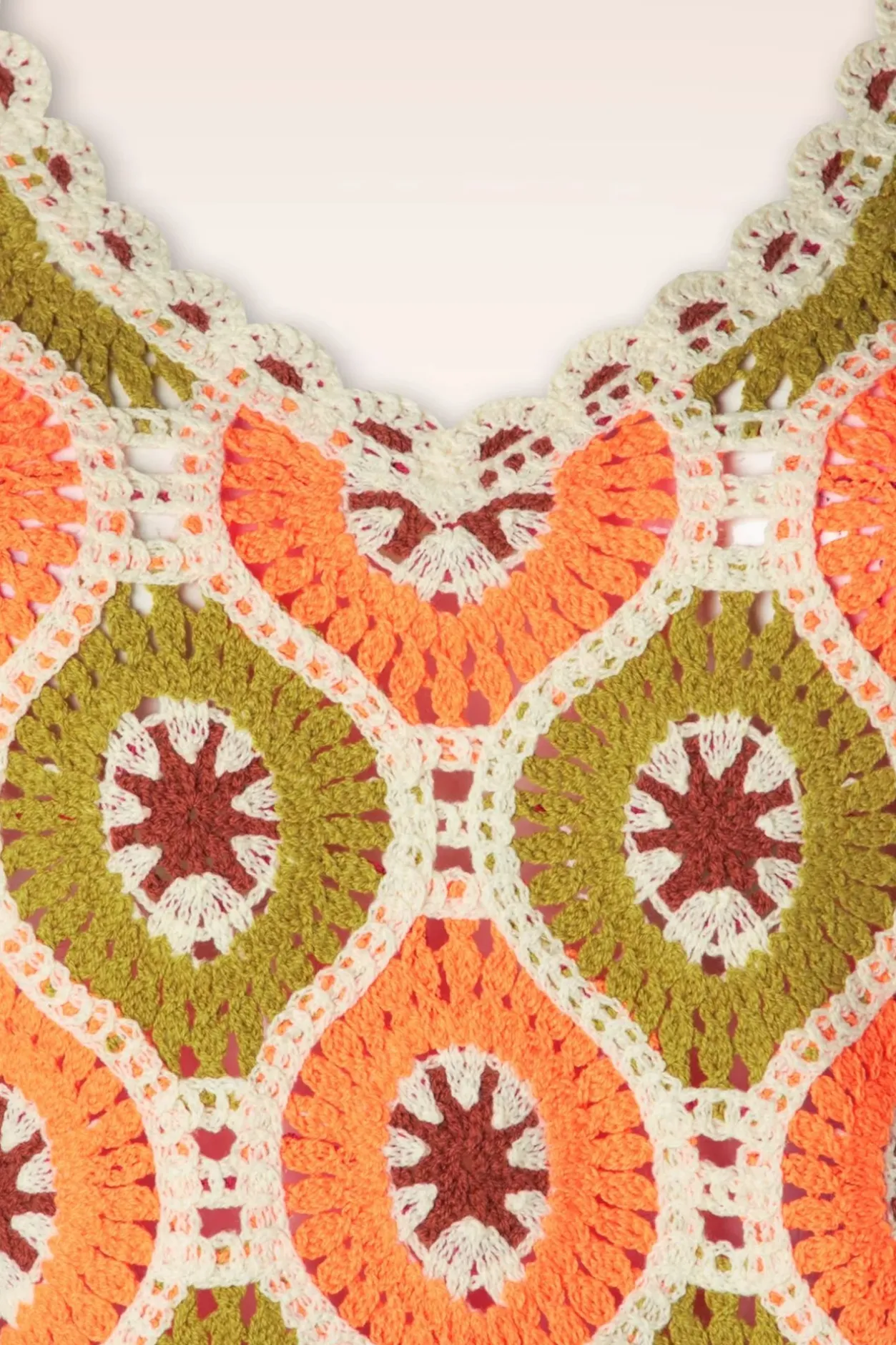 “Crochet All Day, Everyday!” Janis Is Uitgevoerd In Een Grof Gehaakte Katoenmix Met Een Hele Lichte Stretch Die Heerlijk Draagt En Voorzien Is Van Een Groovy Seventies Patroon.
