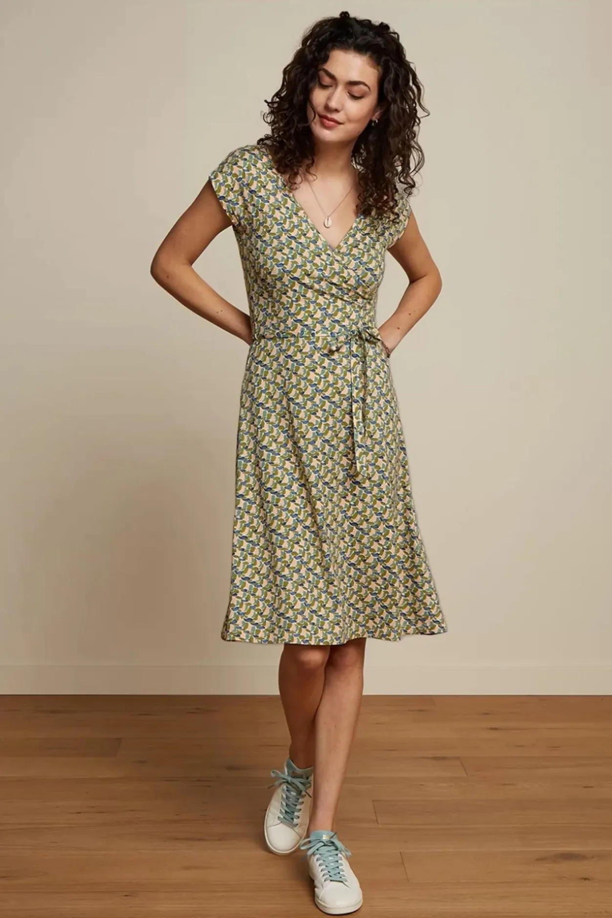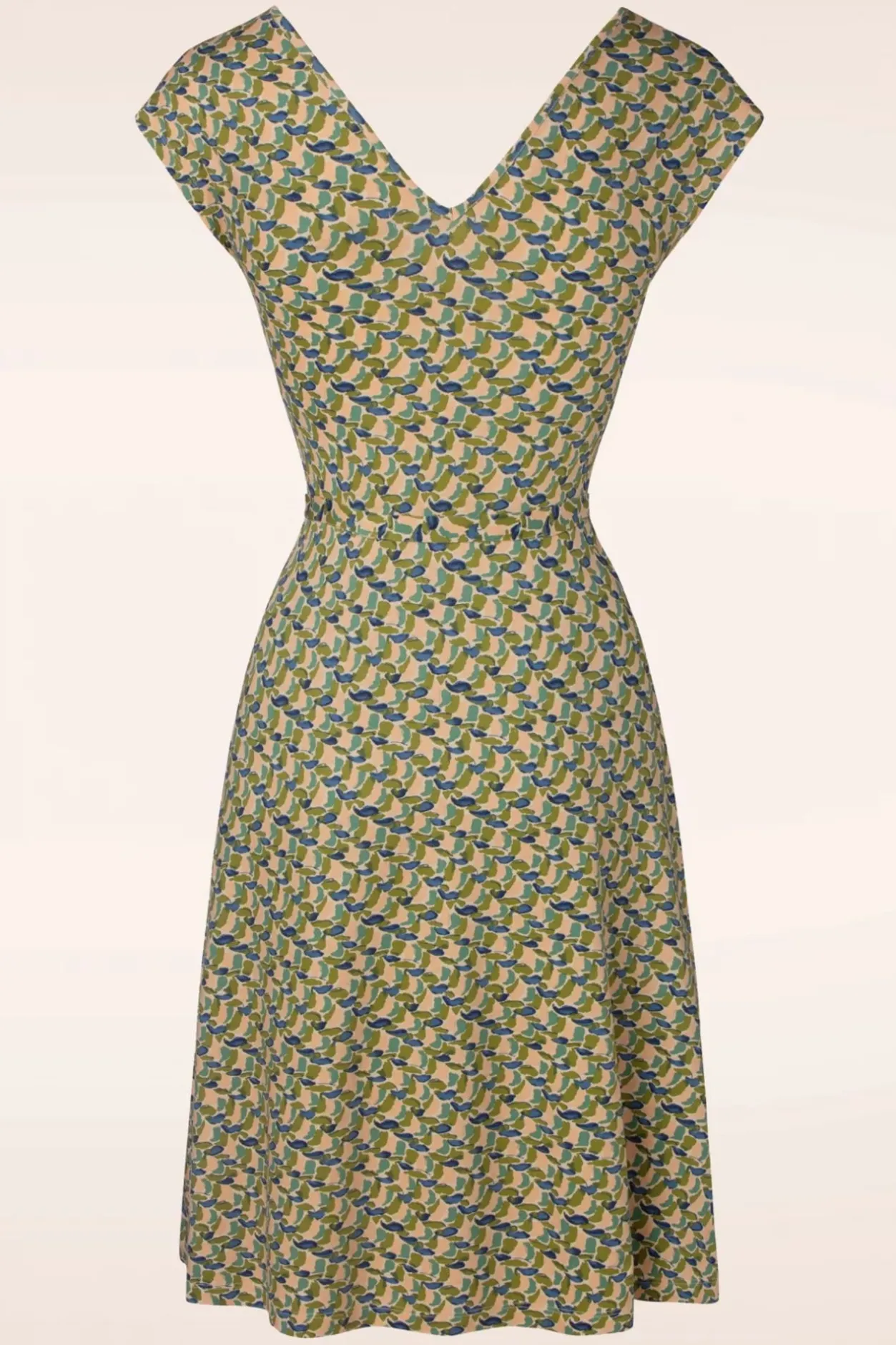 Verliefd Met Een Hoofdletter V! Want Deze Mira Merlini Dress In Woodbine Green Is Voorzien Van Een Prachtige V-Hals Met Vaste Overslag Maar Is Ook Op De Rug Uitgesneden In Een Lage V! Bovendien Ademt Ze Één En Al Vintage Dankzij Haar Flatterende Semi-Swing Stijl, Haar Korte Kapmouwtjes En De Afneembare Matching Sash In De Taille. Uitgevoerd In Een Soepele En Stretchy, Lentegroene (Ecovero) Viscosemix Met Een Geweldige, Kleurrijke Retro Print Die Heerlijk Luchtig Draagt. En Je Weet Wat Ze Zeggen; Geef Je Over Aan De Liefde! 😉