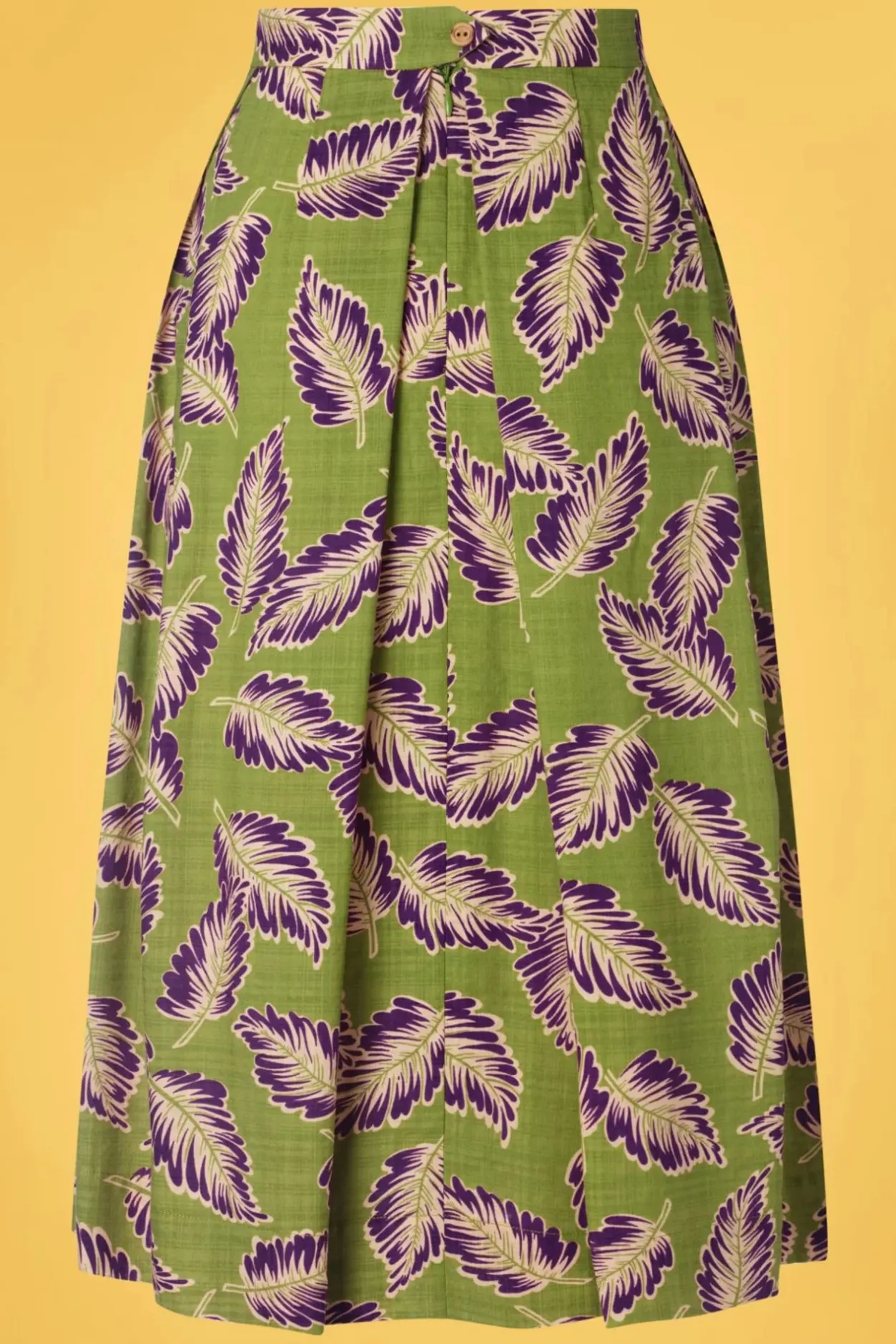 Ik Ga Op Vakantie En Neem Mee… Deze Suzette Dominica Pleat Skirt In Woodbine Green Natuurlijk! Ze Wordt In De Taillegedragen En Loopt Uit In Een Flatterende, Semi-Swing Rok Met Stolpplooien. Uitgevoerd In Een Soepel Vallende, Luchtige Katoen-/Viscosemix In Peergroen (Stretcht Niet!) Met Een Fantastische Print Van Tropische Bladeren In Paars En Crème. Een Leuk Sandaaltje Eronder, Een Matching Top En Je Bent Helemaal Klaar Voor Warmere Dagen!