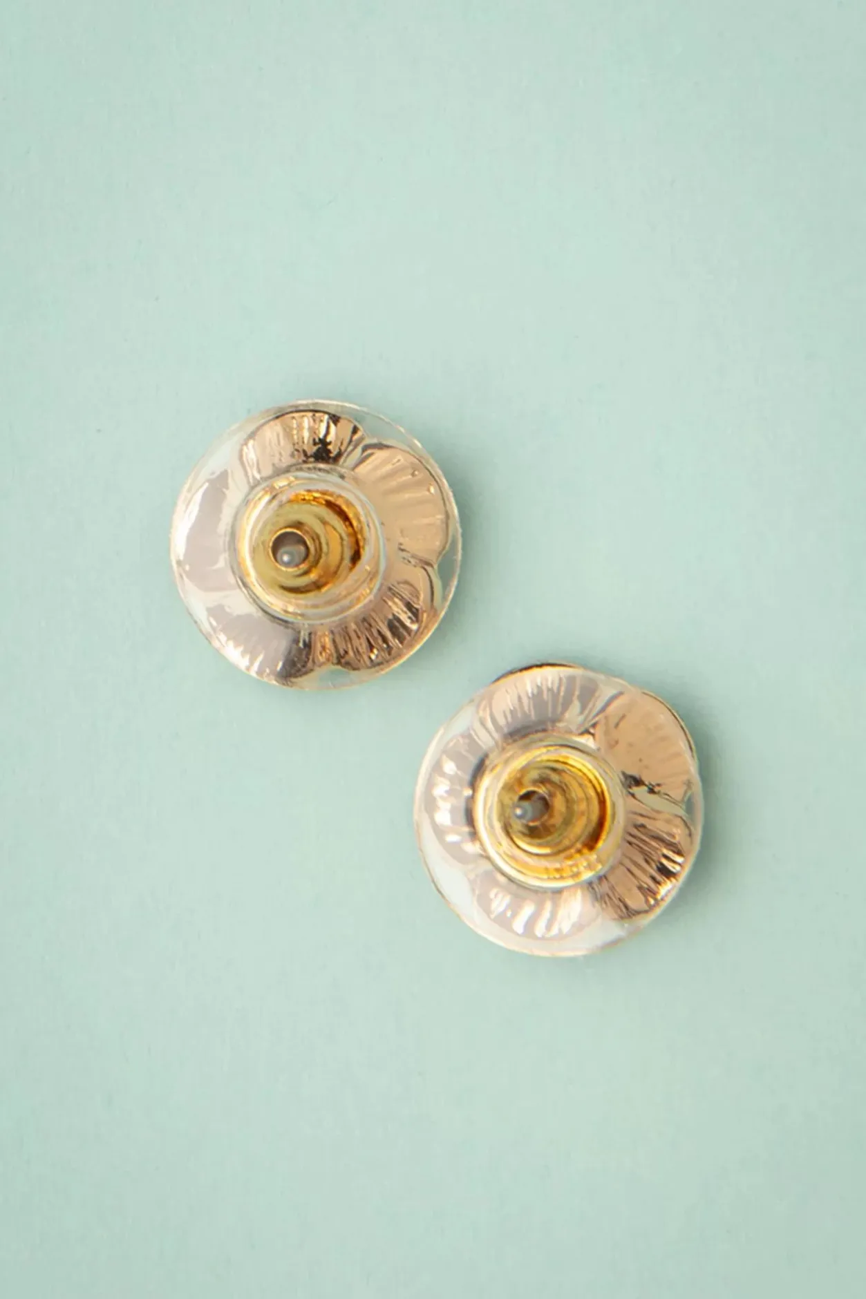 Klein Maar Oh Zo Fijn! Deze 50S Small Rose Oorbellen In Lipstick Rood Zijn Uitgevoerd In Antiek Goudkleurig Metaal Met Lipstickrode Geëmailleerde Blaadjes En Een Minuscuul ‘Faux’ Pareltje In Het Midden. ”Flowers Don’T Tell, They Show!”