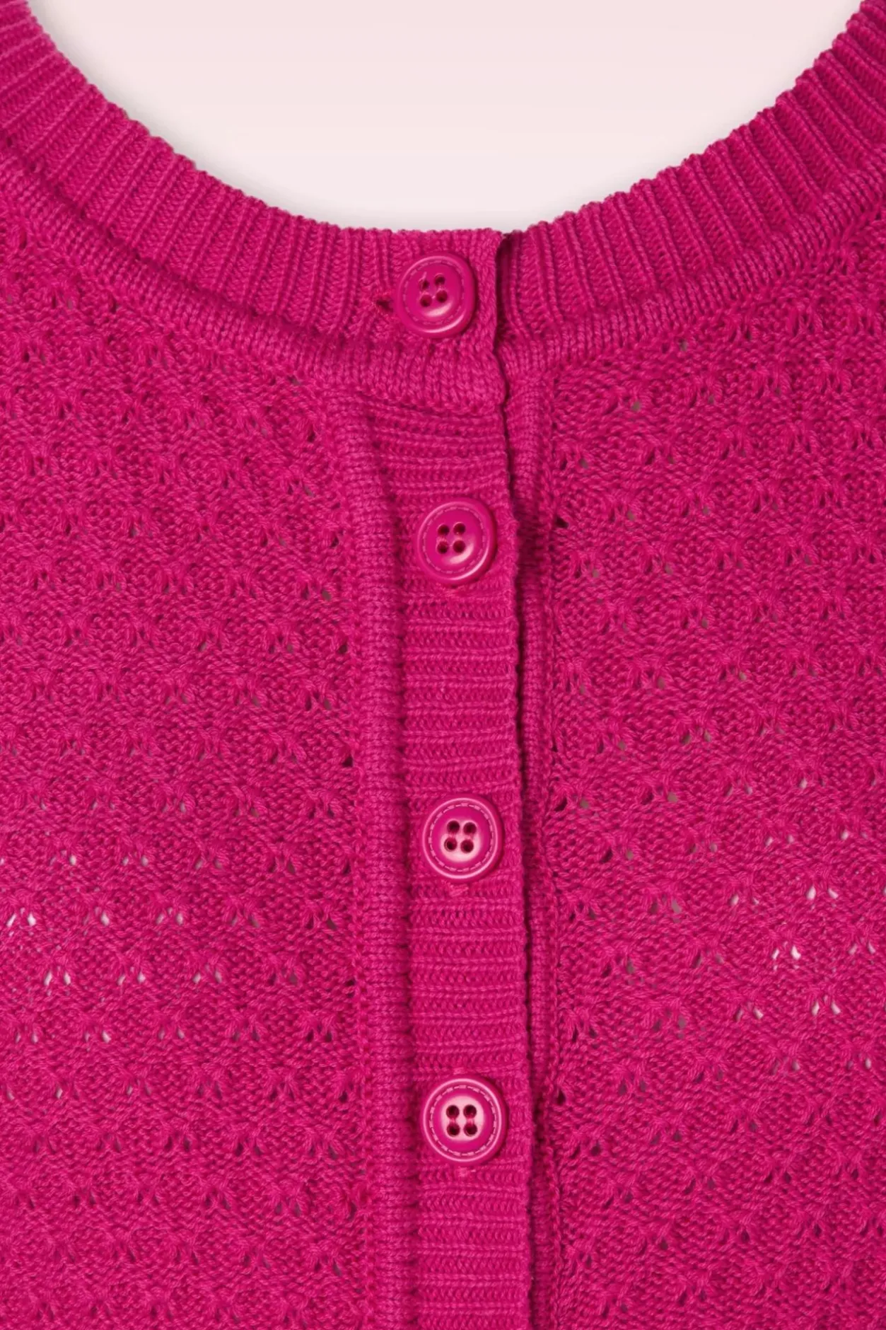 De Combinatiemogelijkheden Zijn Eindeloos Met Deze 50S Jennie Cardigan In Magenta… Online In Nederland, Duitsland En Frankrijk Exclusief Verkrijgbaar Bij Topvintage! Vestjes Zijn Vaak Ondergewaardeerde Kledingstukken Maar Laten We Daar Eens Verandering In Brengen. Je Draagt Ze Open Of Gesloten En Zorgen Ervoor Dat Je De Rest Van Je Garderobe Ook Tijdens Koudere Dagen Kunt Dragen, Daar Verdienen Ze Toch Wel Wat Credits Voor?! Deze Veelzijdige Topper Heeft Een Klassieke Snit Met Een Ronde Halslijn, 3/4 Mouwen En Stretchy Ribboord Voor Een Mooie Pasvorm. Uitgevoerd In Een Dikkere Maar Heerlijke Soepele En Stretchy, Fijngebreide Katoen In Een Magentaroze Kleur Met Een Subtiel Patroon. Jennie Verdient Echt Een Plaatsje In Jouw Kledingkast, Toch?