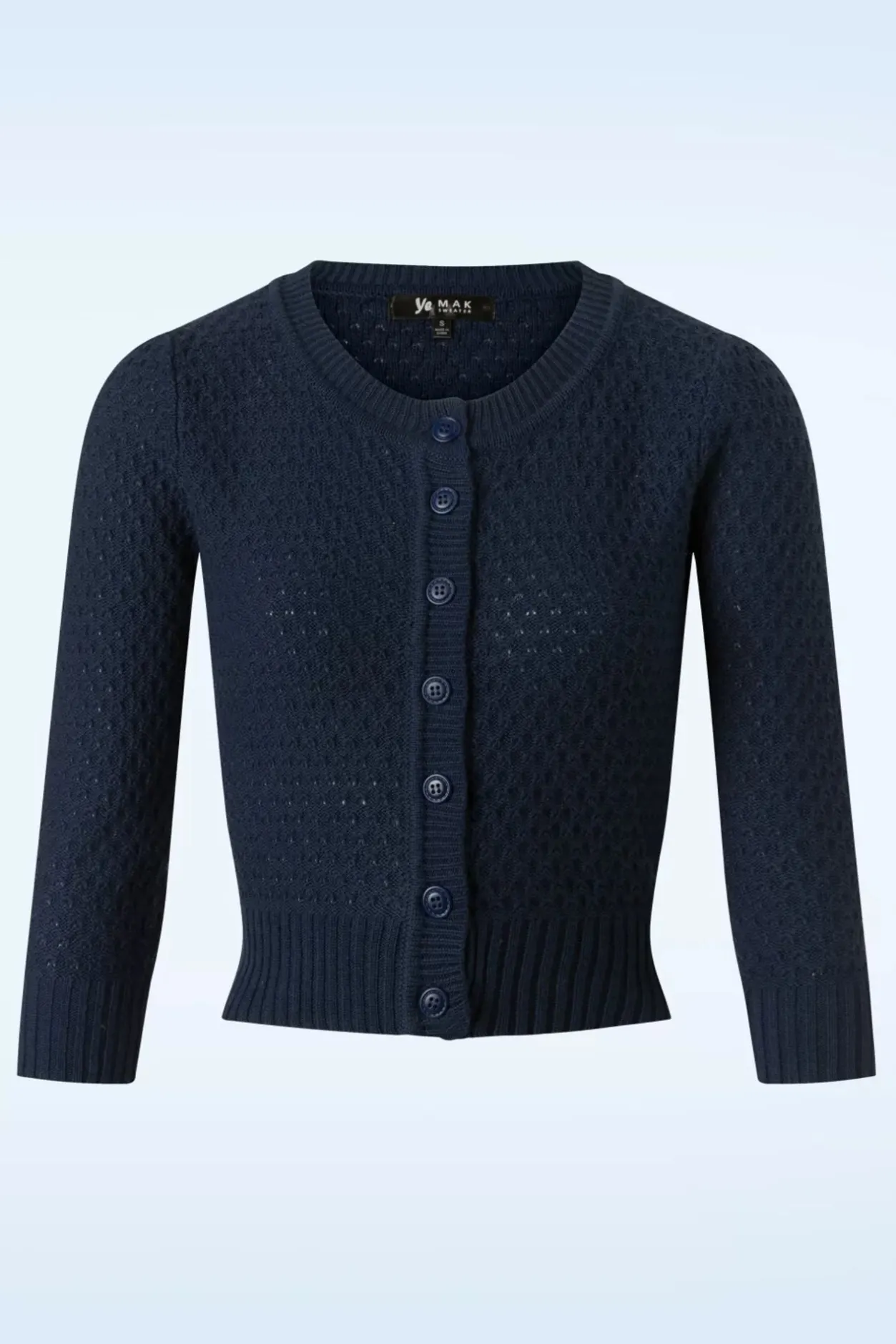 De Combinatiemogelijkheden Zijn Eindeloos Met Deze 50S Jennie Cardigan In Navy… Online In Nederland, Duitsland En Frankrijk Exclusief Verkrijgbaar Bij Topvintage! Vestjes Zijn Vaak Ondergewaardeerde Kledingstukken Maar Laten We Daar Eens Verandering In Brengen. Je Draagt Ze Open Of Gesloten En Zorgen Ervoor Dat Je De Rest Van Je Garderobe Ook Tijdens Koudere Dagen Kunt Dragen, Daar Verdienen Ze Toch Wel Wat Credits Voor?! Deze Veelzijdige Topper Heeft Een Klassieke Snit Met Een Ronde Halslijn, 3/4 Mouwen En Stretchy Ribboord Voor Een Mooie Pasvorm. Uitgevoerd In Een Dikkere Maar Heerlijke Soepele En Stretchy, Fijn Gebreide Navyblauwe Katoen Met Een Subtiel Patroon. Jennie Verdient Echt Een Plaatsje In Jouw Kledingkast, Toch?