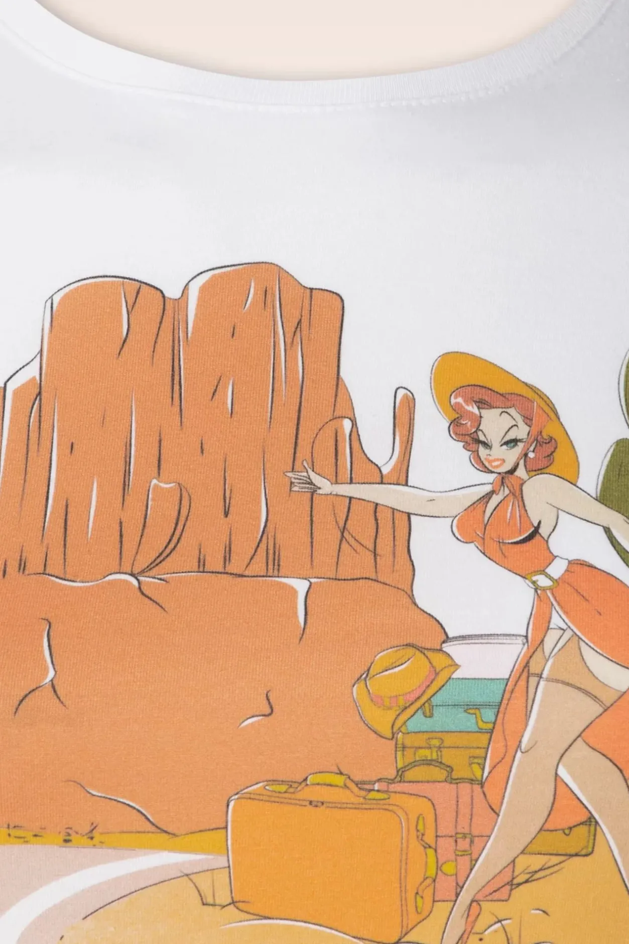 ”On The Road Again…” Ga Op Roadtrip In Dit Te Leuke T-Shirt! Uitgevoerd In Een Heerlijk Zachte En Stretchy, Witte Katoen Voorzien Van Een Pin-Up Print.