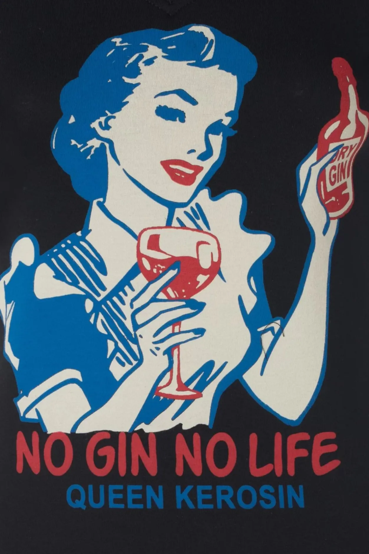 Nieuwe Lente/Zomercollectie ~ ”No Gin, No Life!” Dit T-Shirt Met Een Te Leuke Print Is Uitgevoerd In Een Heerlijk Zachte En Stretchy, Zwarte Katoenmix Die Een Genot Is Om Te Dragen.