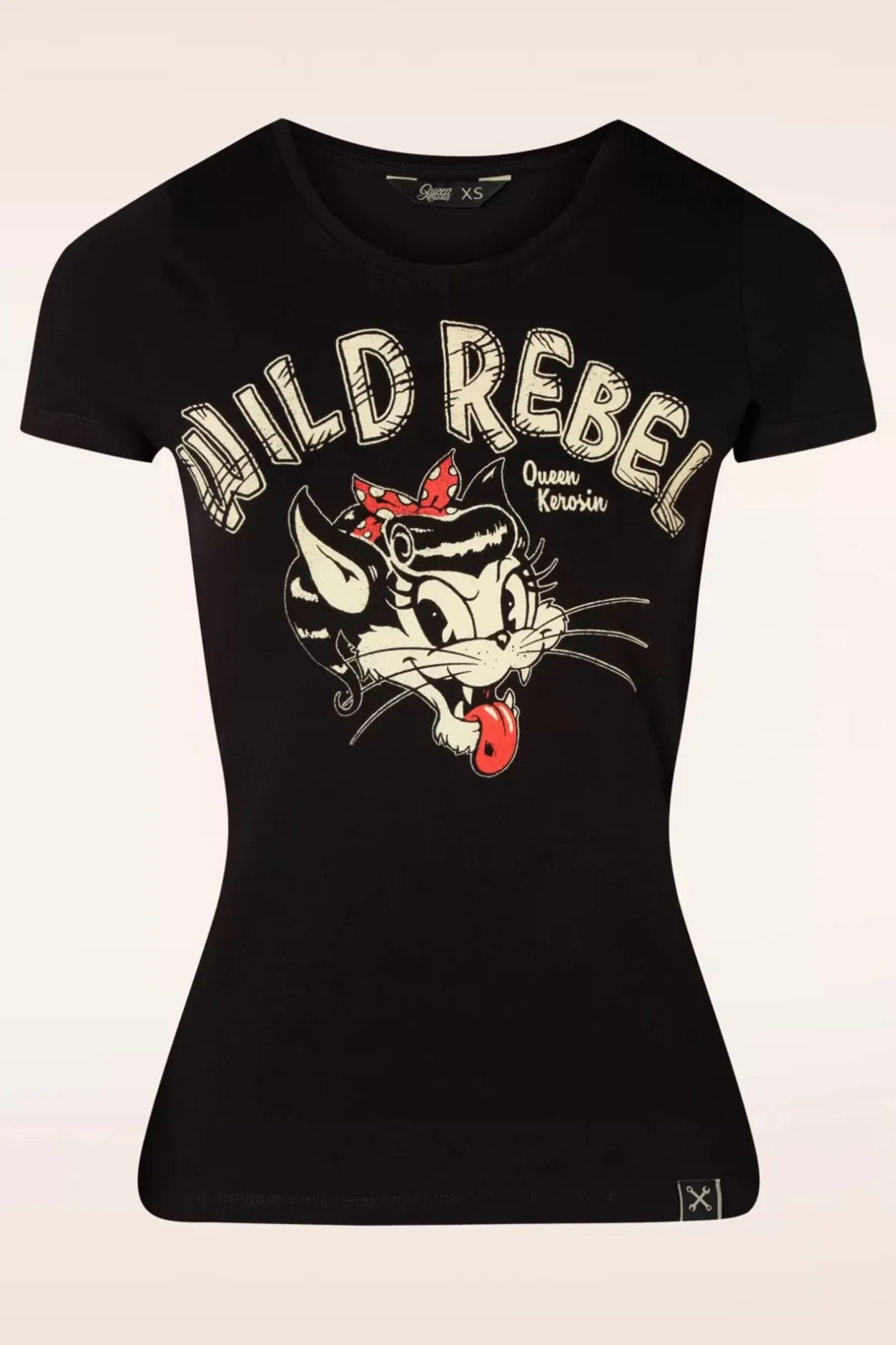 Dit50S Wild Rebel T-Shirt In Zwart Hoort Gewoon Jouw Kledingkast Terocken! Want Zeg Nou Zelf; T-Shirts Kun Je Toch Nooit Genoeg Hebben 😉 Eenspeels Rond Halslijntje, Korte Mouwen En Een Te Leuke Print Van Een Wild Cat Makendit Shirt Een Echte Must-Have. Uitgevoerd In Een Heerlijk Zachte En Stretchy, Zwarte Katoenmix Die Een Genot Is Om Te Dragen. Je Kunt Vast Nog Wel Één Shirtje Aan Je Collectie Toevoegen Toch? You Wild Rebel Queen!