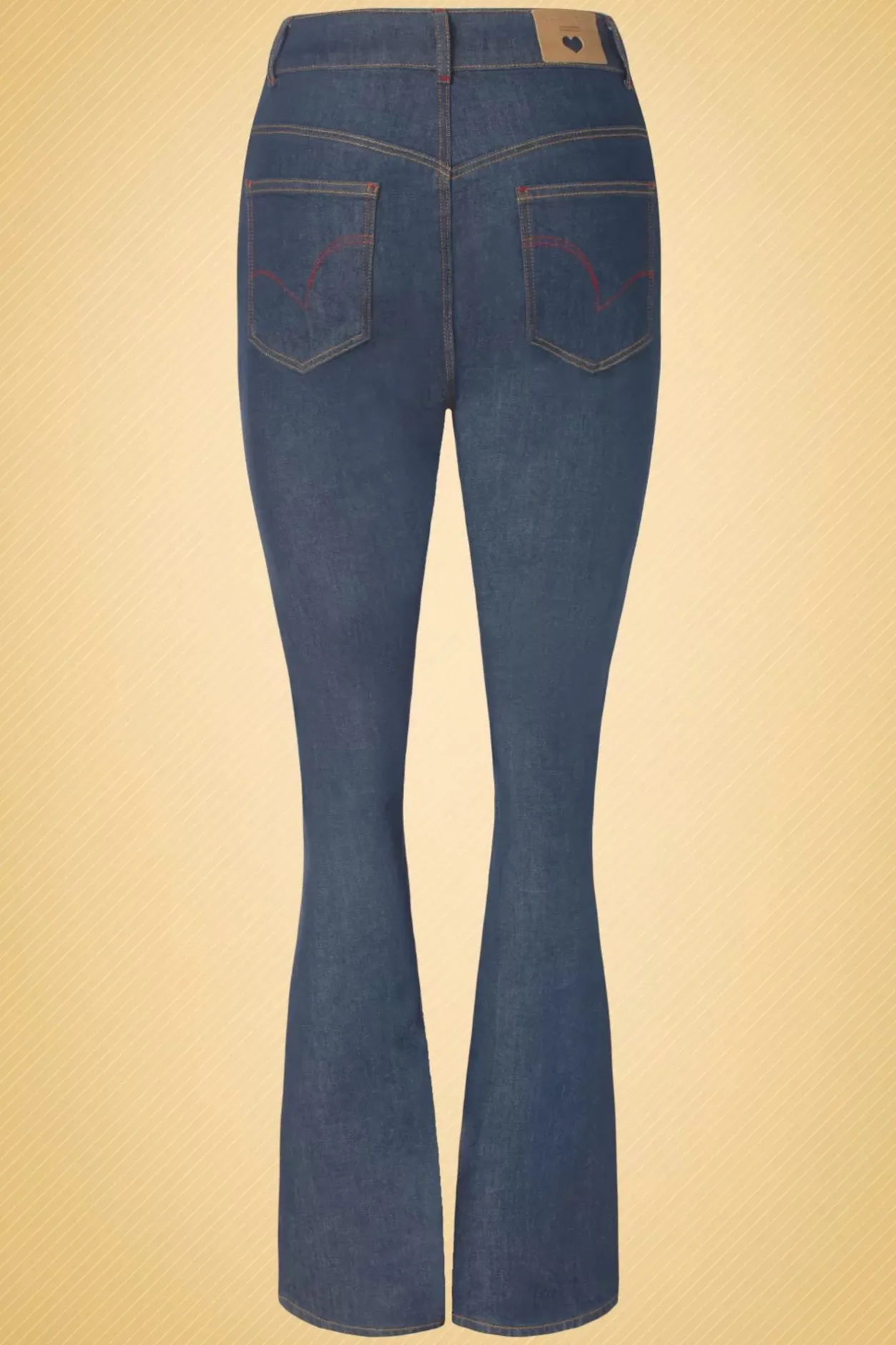 Ons Eigen Merk Rock-A-Booty Staat Bekend Om Haar ‘Unique Blue Dreams’… Deze 50S Rosa Jeans In Denim Blue Is Zo’N Denim Droom Die Uitkomt! Rose Heeft Een Vrouwelijke Hoge Taille, Steekzakjes Aan De Voorzijde, Zakjes Aan De Achterzijde En Wijd Uitlopende Pijpen Die Je Benen Eindeloos Lang Doen Lijken. De Gehele Rock-A-Booty Collectie Is Van Een Hoogwaardige Kwaliteit, Zo Is Ook Deze Denim Beauty Uitgevoerd In Een Prachtige Stevige Denimblauwe Katoenmix (Stretcht Nauwelijks) Die Je Rondingen Perfect Volgt En Is Afgewerkt Met Koperkleurige Knopen En Donkergele Stiksels Voor Die Authentieke Touch. Rosa Has Got Your Back!” En Wij Bedoelen ‘Back’ Letterlijk Want Niemand “Rocks Your Booty Like Rosa Does”! 😉