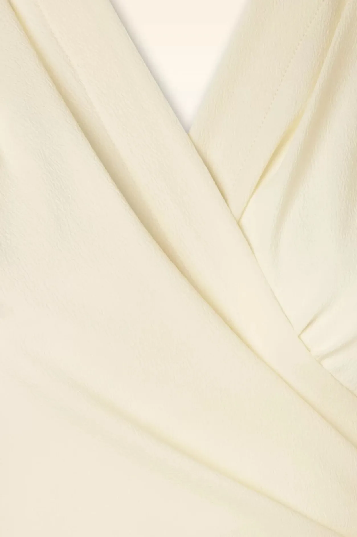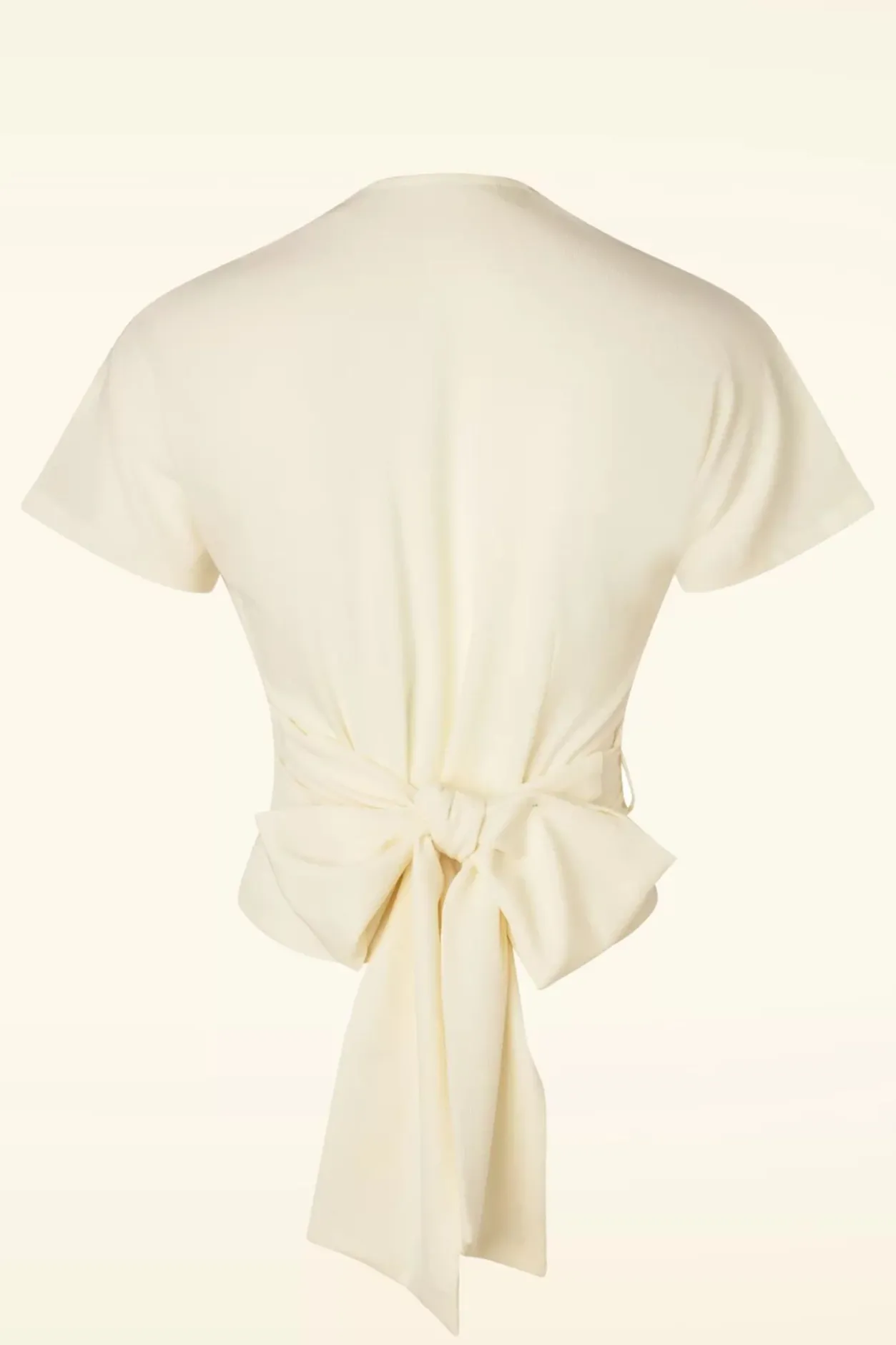Deze 50S Darla Short Sleeve Wrap Blouse In Antique White Is Een Van De Mooiste Vintage Inspired Blouses Die Je Ooit Zult Zien! Deze Overslag Beauty Heeft Elegante Platte Plooien, Korte Kimono Stijl Mouwen En Sluit D.M.V. Vaste Strikbanden. Uitgevoerd In Eensoepele, Ivoorwitte Stof (Stretcht Niet) Met De Looks Van Crêpe De Chine Voor Die Ware Authetieke Touch. Combineer Haar Met Een Pencil Rok Of Een High Waist Broek Met Wijdepijp Voor Een Classy 50S Stijl!