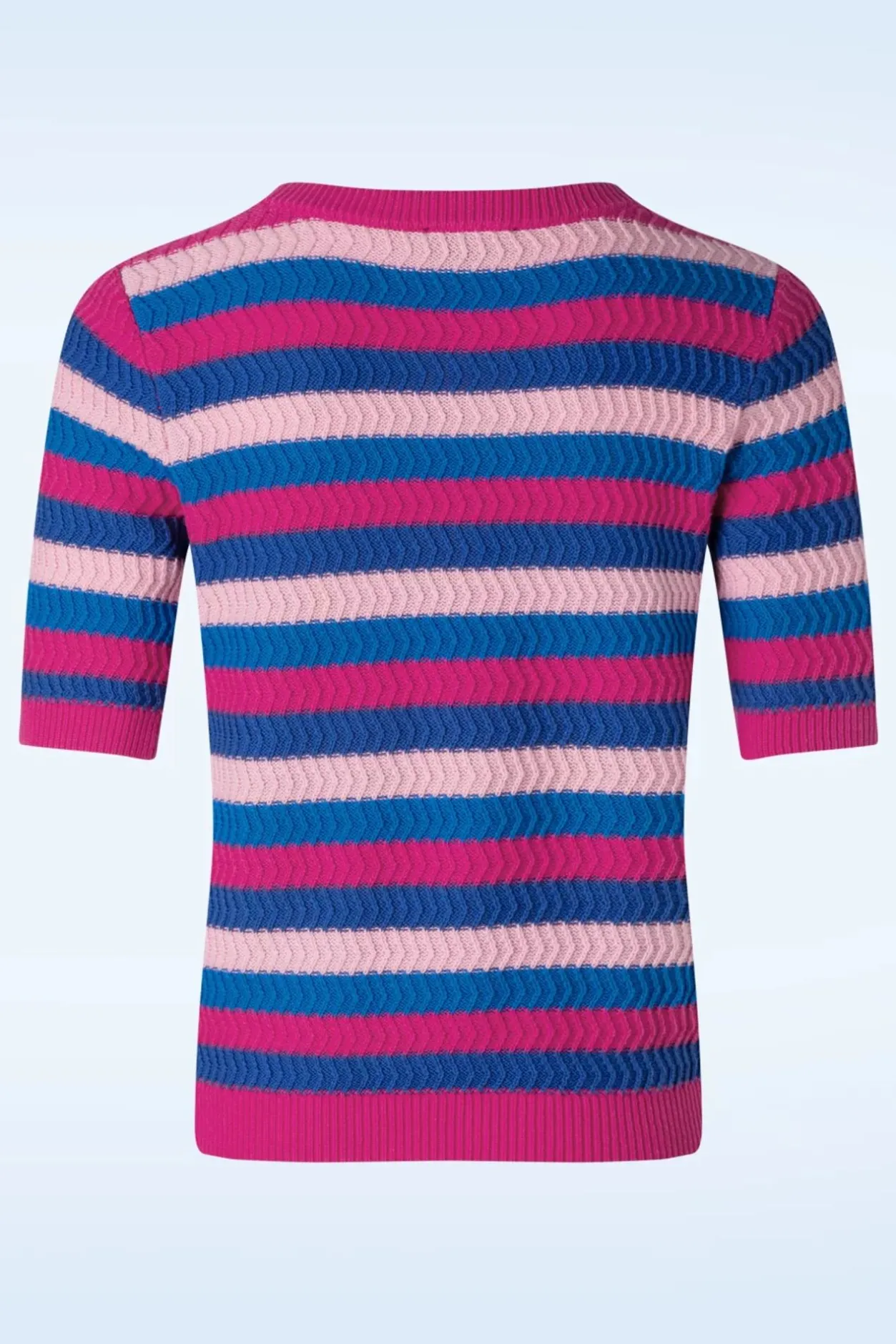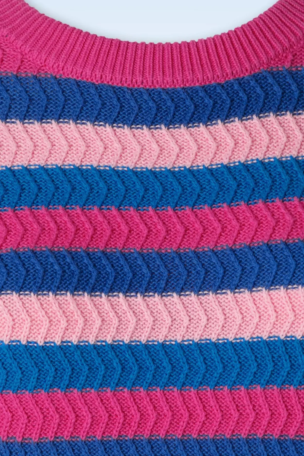 ”All We Knit Is Love!” Iris Is Uitgevoerd In Een Grof Gebreide En Stretchy, 100% Katoen En Voorzien Van Een Fantastische Kleurenmix Van Blauw En Roze.