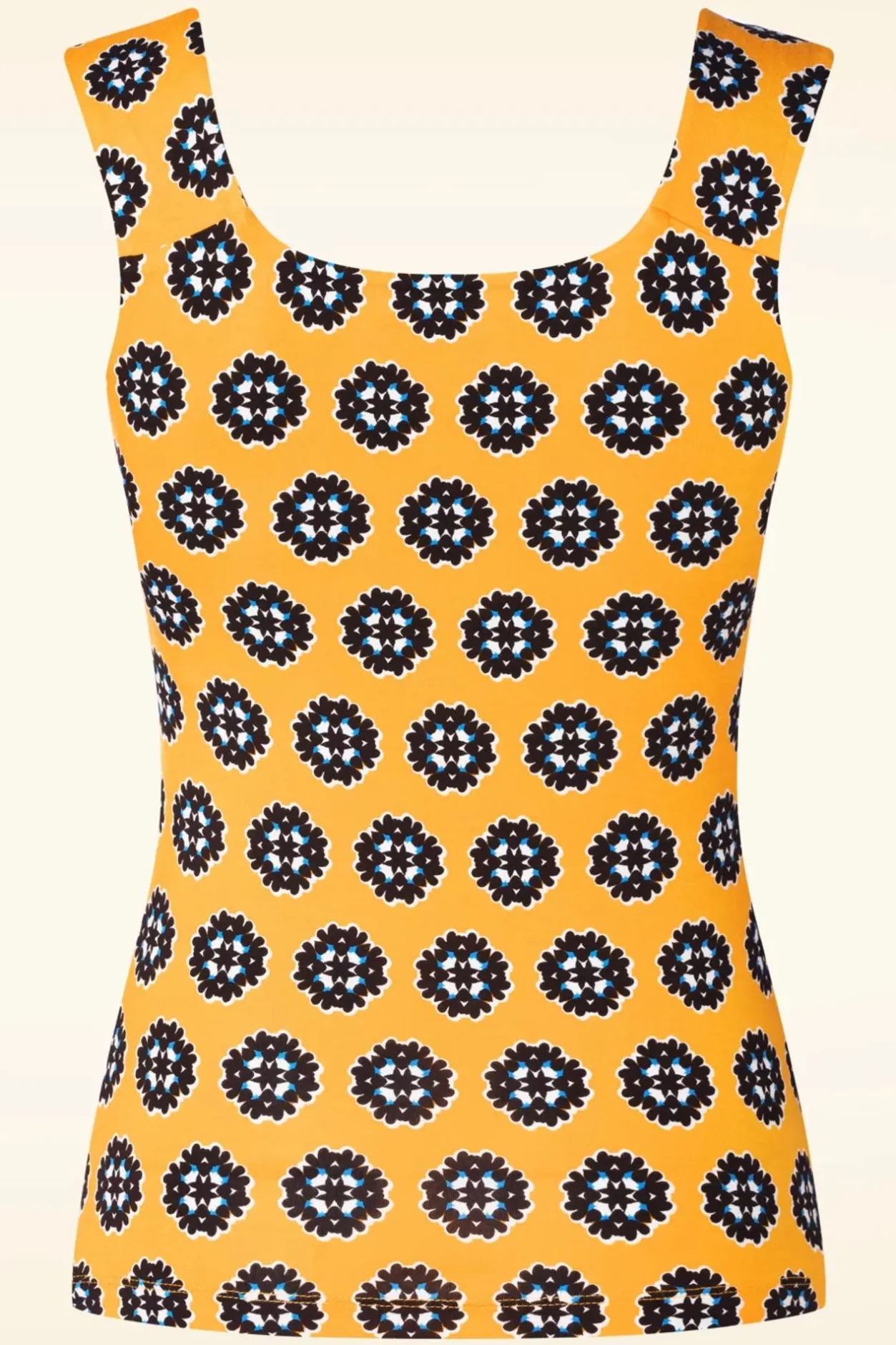 “Life Is Short… Buy The Top!” Deze Nylah Top Is Uitgevoerd In Een Zachte En Stretchy, Gele Bamboe Viscosemix Voorzien Van Een Grafische Printje In De Kleuren: Bruin, Blauw En Wit.