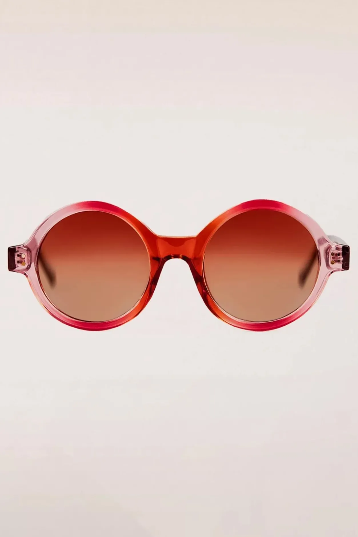 ”stay Shady, Baby!” Een Super Funky, Rond Model Gemaakt Van Gerecycled, Semi-Transparant Kunststof Met Een Overloop In Rood, Roze Naar Oranje En Bruine Poly Carbon Kunststof Glazen.