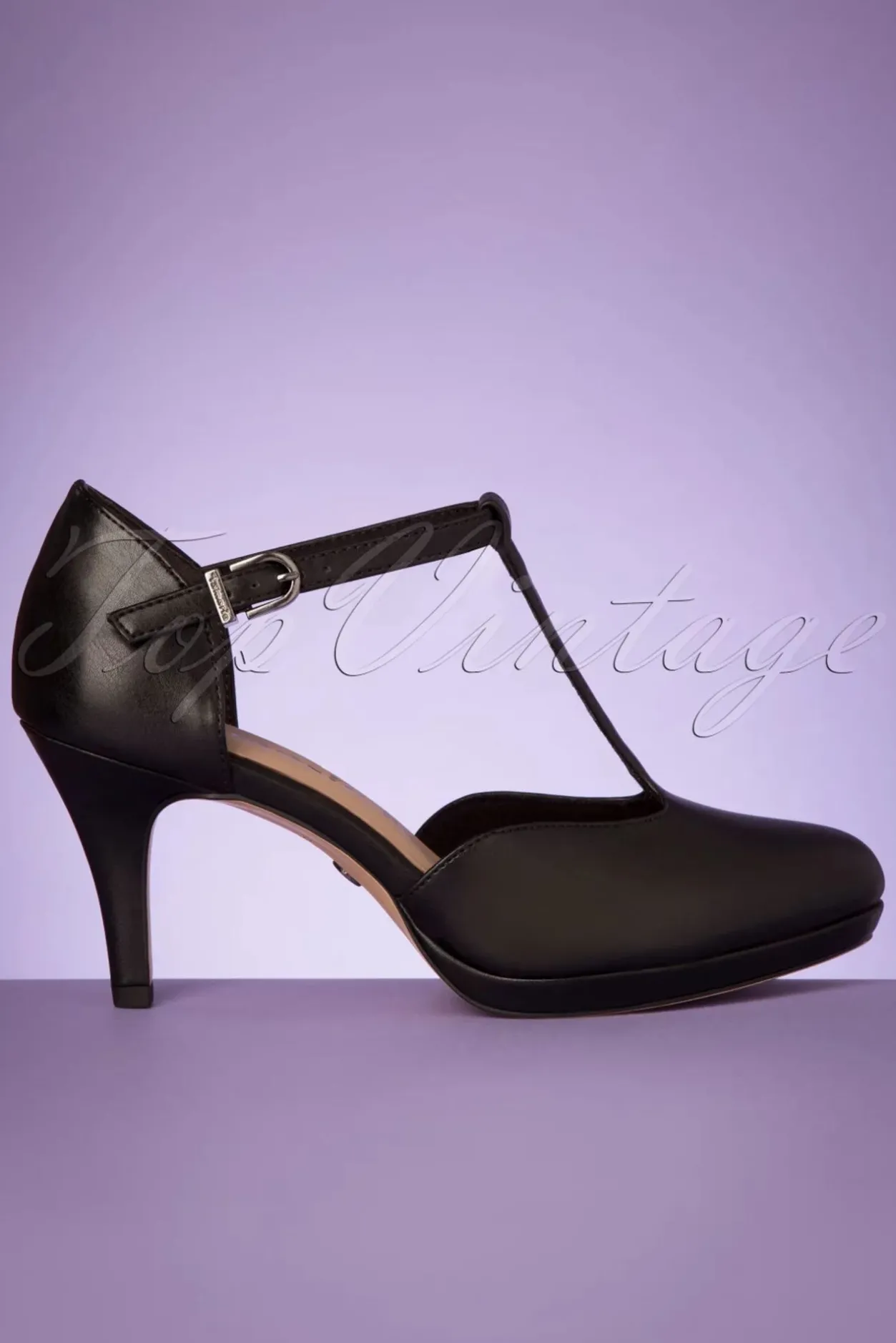 Deze 50S Phyllis T-Strap Pumps In Matte Black Beschikken Over De X-Factor! Ze Zijn Uitgevoerd In Zwart ‘Faux’ Leder Met Een T-Strap Bandje, Een Elegante Stiletto Hak En Een Subtiel Plateau Waardoor Ze Minder Hoog Zijn Dan Ze Lijken. Het Comfortabele ‘Touch-It’ Voetbed Zorgt Ervoor Dat Pijnlijke Voetjes Tot Het Verleden Behoren! Kortom, Een Prachtige En Veelzijdige Pump Die Iedere Retro Outfit Helemaal Afmaakt!