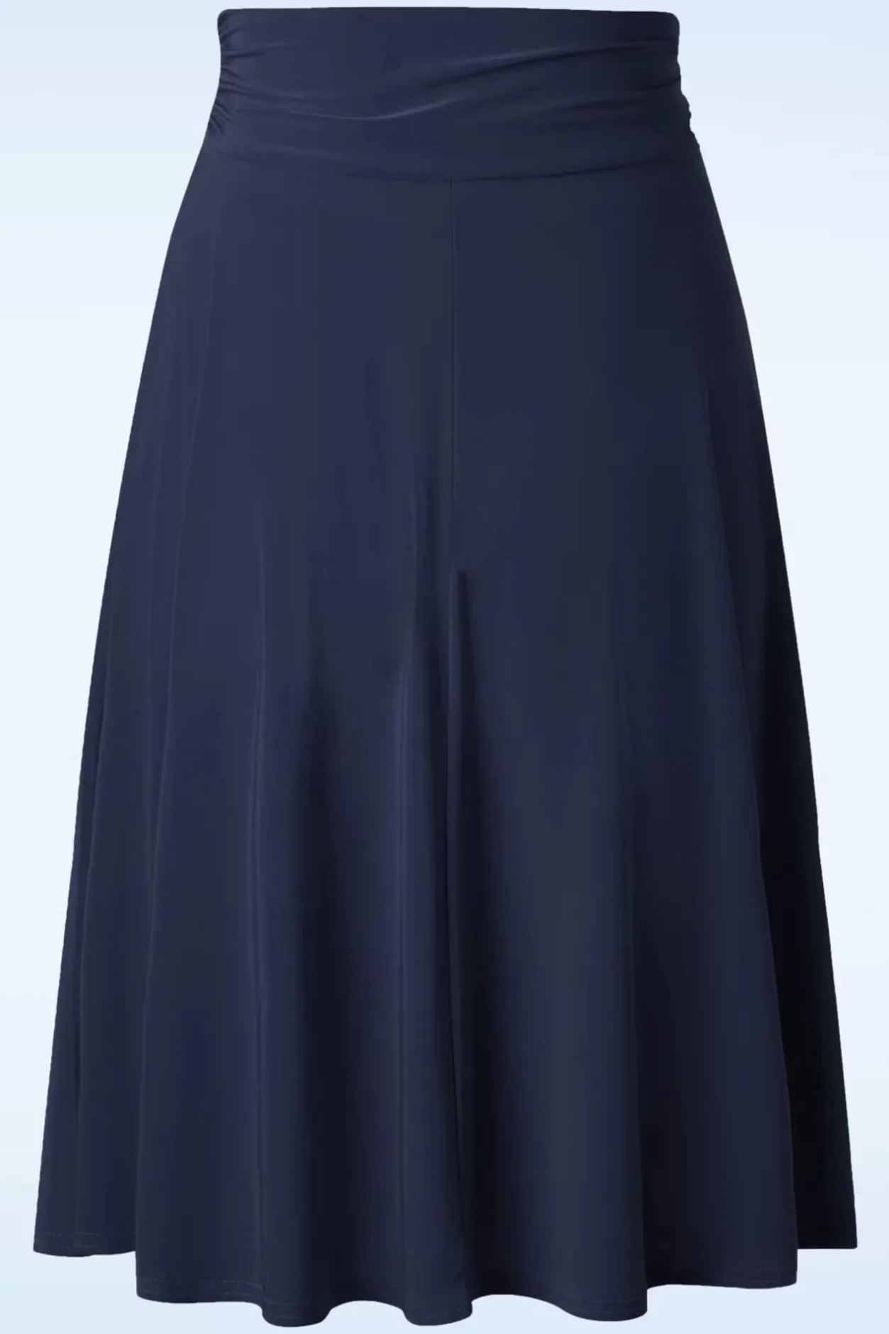 Dagje Kantoor Of Een Avondje Uit… Deze Aliyah Swing Skirt In Navy Is Jouw Sidekick! En Dankzij Haar Classy En Sophisticated Uitstraling Maar Ook Héérlijk Draagcomfort Geschikt Voor Elke Gelegenheid ;-). Deze Beauty Wordt Hoog In De Taille Gedragen Waardoor Je Een Prachtig Zandloper Figuur Krijgt, Oh La La. Uitgevoerd In Een Soepel Vallende, Stretchy, Glanzende, Navyblauwe Slinky Stof Die Elegant Met Je Mee Beweegt. All Day, Every Day, Aliyah All The Way!