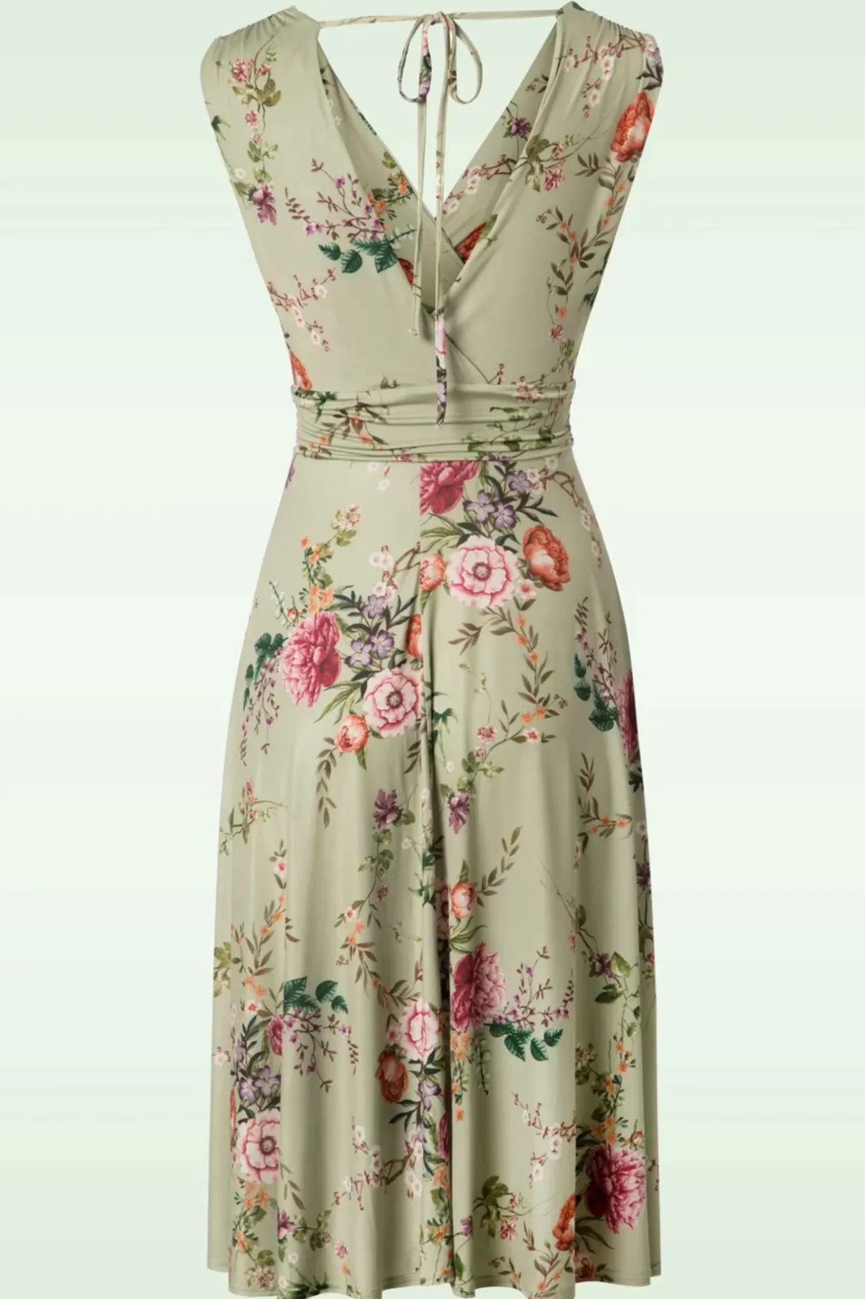Met Deze 50S Jane Floral Midi Dress In Vintage Green Creëer Je De Perfecte ‘Vintage Romance’ Look! Lovely Jane *Zucht*… Wanneer Je Jane Aantrekt Weet Je Het Meteen; Ze Is Perfect. Ze Laat Je Op En Top Vrouw Voelen Door De Prachtige Aansluitende Overslag Top Met Een Sexy V-Halslijn, V-Rug, Speelse Strikbandjes En Haar Flatterende Plooien Aan De Zijkant. De Zwierige Semi-Swing Rok En Brede Schouderbanden Zorgen Voor Een Flinke Portie Elegantie, Wow! Ze Is Uitgevoerd In Een Glad En Soepel, Licht Glanzend, Vintagegroen Stretchy Stofje Met Een Prachtige Bloemenprint Dat Garant Staat Voor Veel Kreukvrij Draagplezier. Jane Is Liefde, Pure Jurken-Liefde!