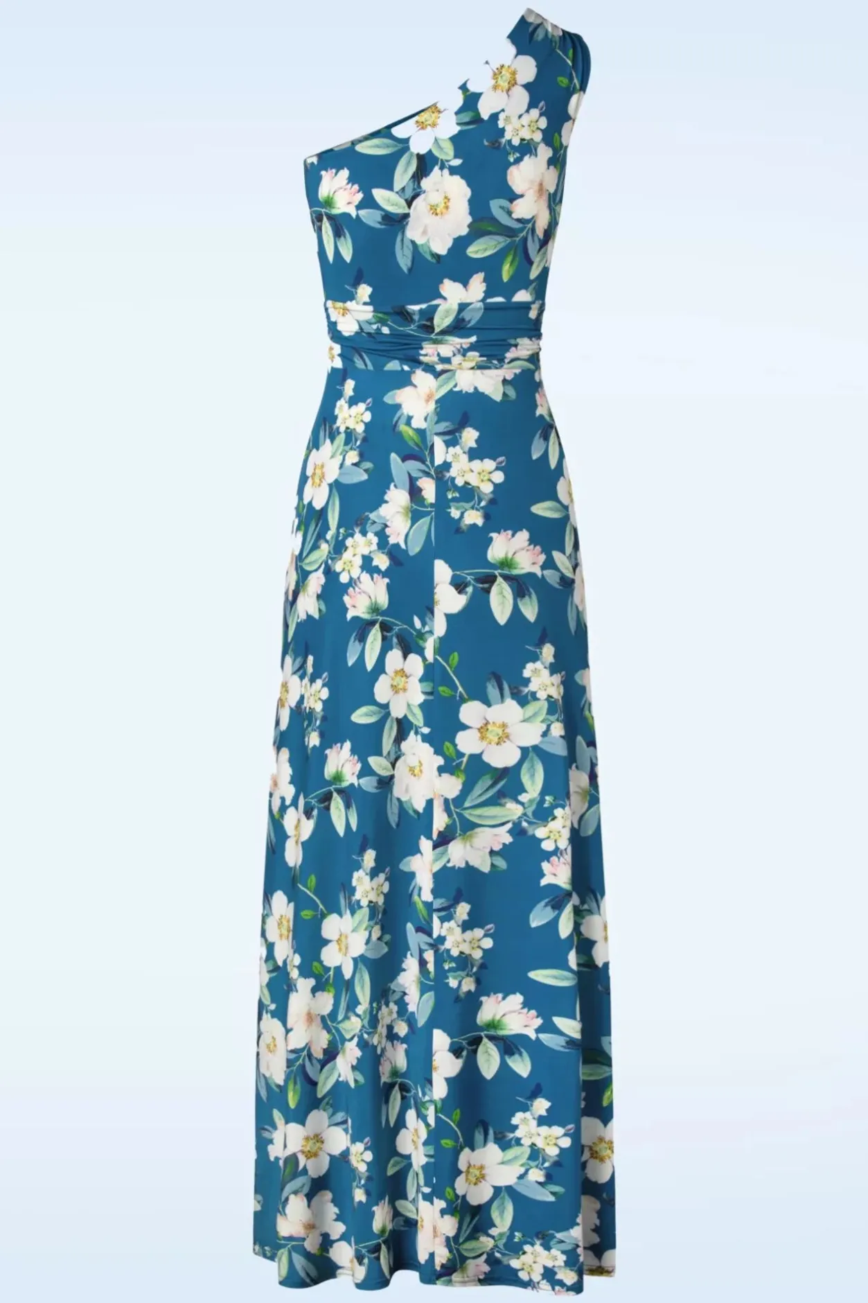 Nieuwe Collectie ~ Deze Olga Jurk Is Een Showstopper To The Max(I)! Deze Pracht Van Een Jurk Heeft Een Aansluitende One Shoulder Top, Een Flatterende Geplooide Tailleband En Loopt Vanaf De Daar Uit In Een Zwierige Maxi Rok. Ze Is Uitgevoerd In Een Soepele En Stretchy, Petrolblauwe Slinky Stof Met Een Prachtige Bloemenprint Die Heerlijk Draagt. Klaar Om Te Stralen?