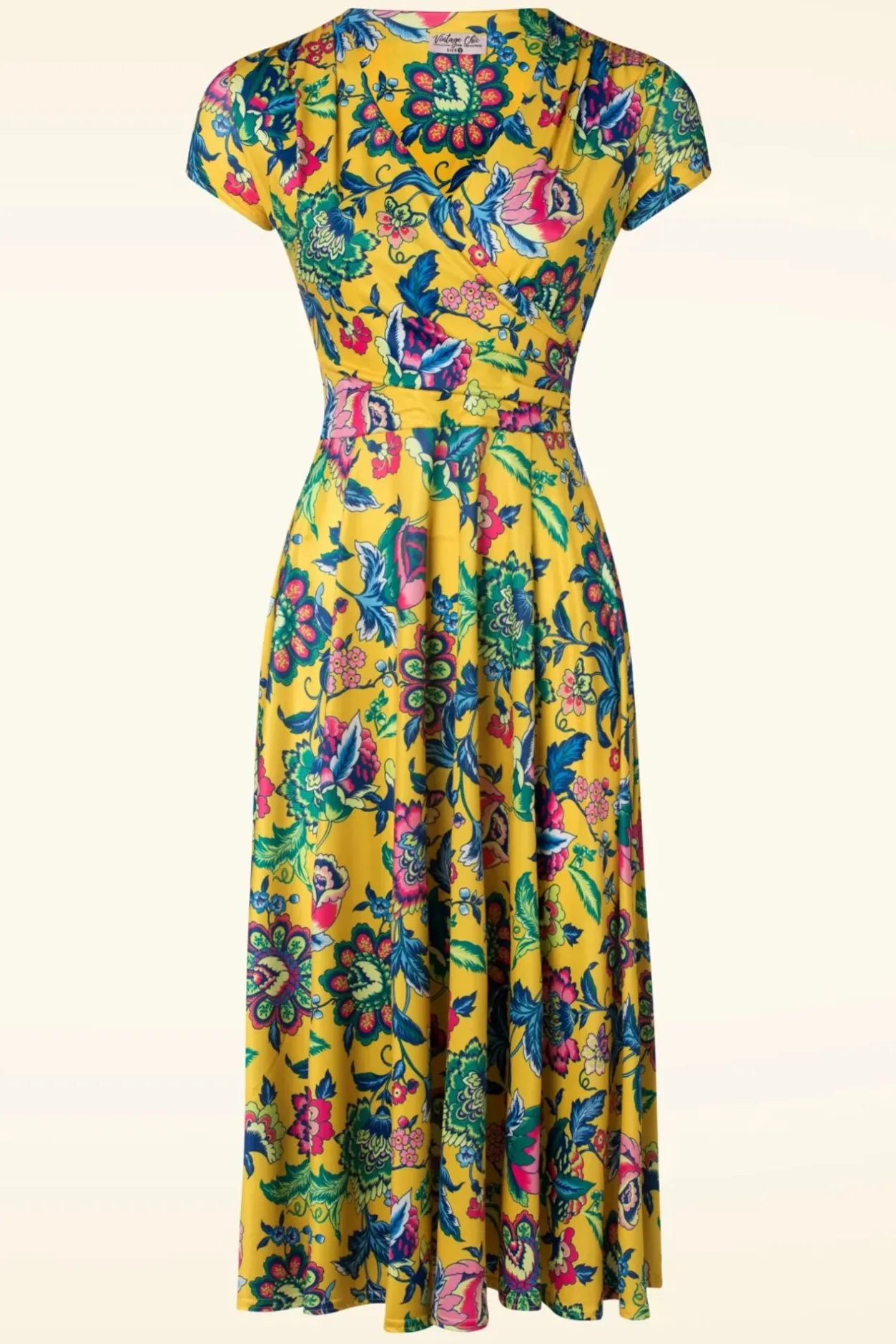 Nieuwe Collectie ~ Deze Petty Jurk Trek Je Aan Om Nooit Meer Uit Te Doen! De Aansluitendetop Met Korte Mouwtjes Heeft Een Mooie Overslag En Een Flatterende Zijplooien Vanwaar Ze Uitloopt In Een Zwierige Rok. Uitgevoerd In Een Glad En Soepel, Stretchy, Mosterdgeel Slinky Stofje Voorzien Van Prachtige Bloemen, Dat Heerlijk Draagt En Niet Kreukt. Oh So Pretty Petty!
