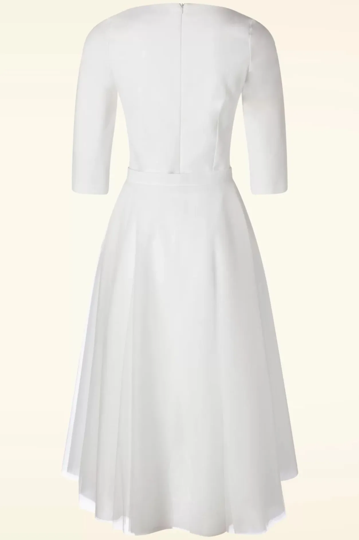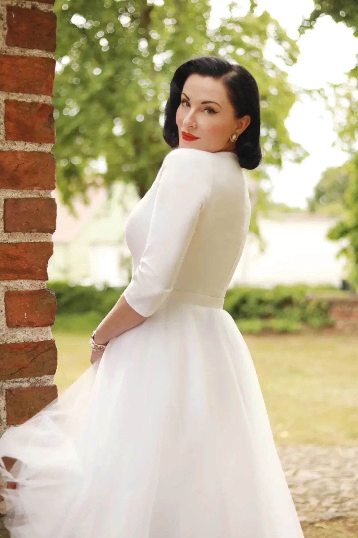 Vier Jij De Grote Dag In The Patrizia Pencil Dress In Wit? Ook Dit Seizoen Hebben Onze Getalenteerde In-House Designers Een Onweerstaanbare Collectie Ontworpen Voor Ons Eigen Merk Vintage Diva! Ze Is Classy En Sophisticated, Vrouwelijk En Toch Heel Sexy Zonder Al Te Veel Prijs Te Geven, Yesss… Patrizia Heeft Alles Wat Wij Diva’s Zoeken In Een Jurk! Uitgevoerd In Een Stevige Maar Soepele, Witte Stof Met Een Lichte Stretch Van Een Luxe Kwaliteit Die Nauw Aansluit Zonder Daarbij Af Te Tekenen. Ook Is Ze Volledig Gevoerd Voor Extra Comfort! “Say ‘Yes’ To Patrizia!”