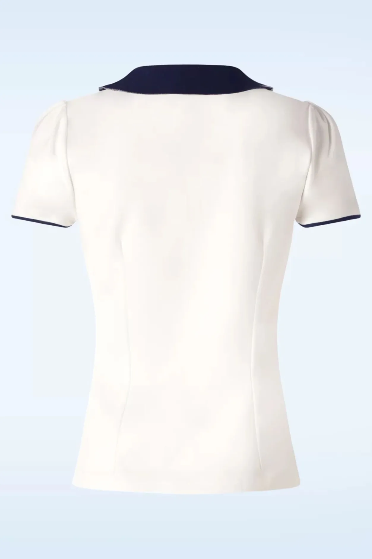 Deze Nautical Cutie Laat Ons Hartje Op Hol Slaan! Ze Heeft Een Typische Sailor Kraagje, Korte Pofmouwen En Is Uitgevoerd In Een Heerlijke Stretchy, Ivoorwitte Stof Die Heerlijk Draagt. ”Ready For Some Adventures?”