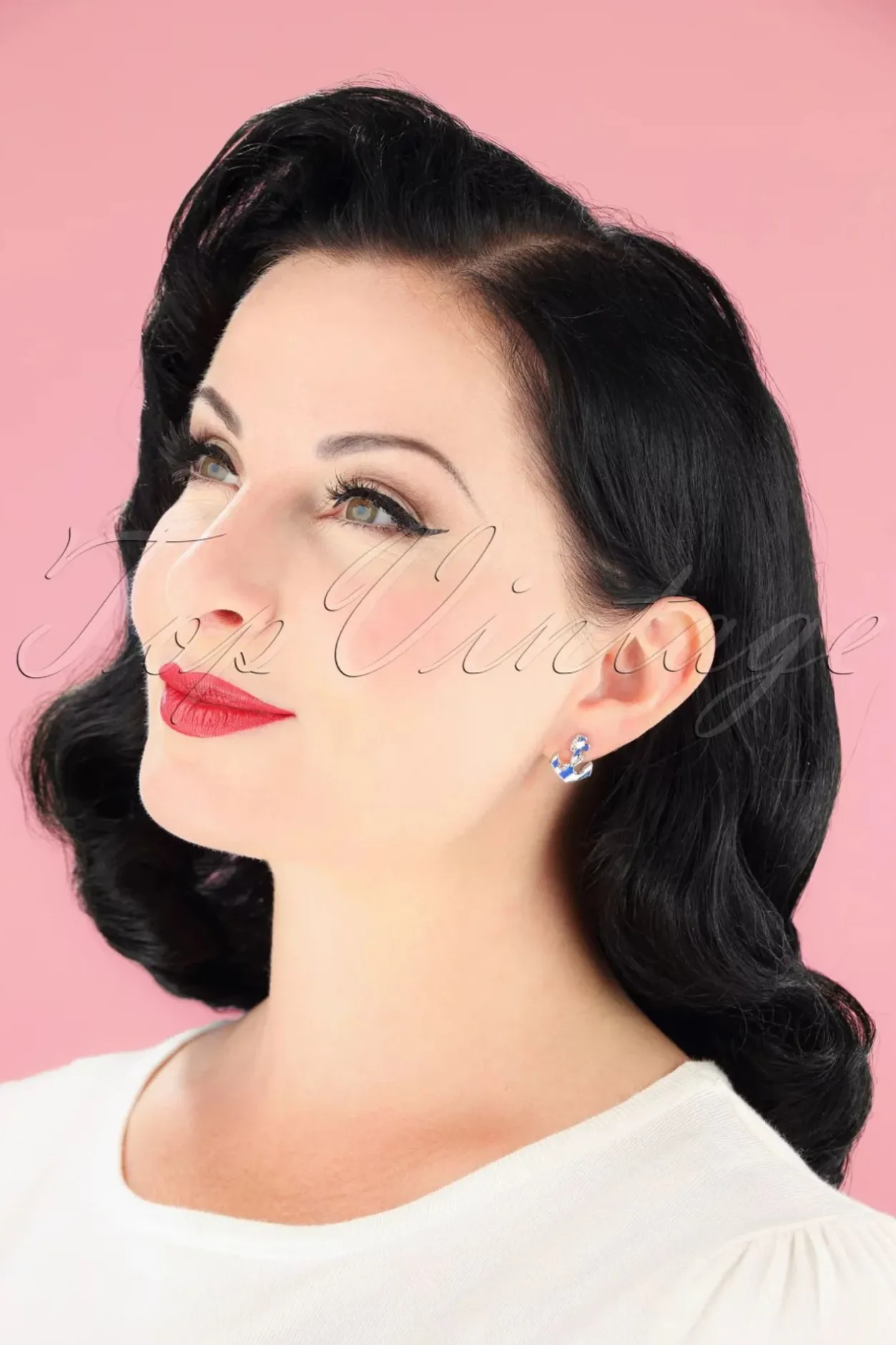 Veranker Je Retro Pin-Up Look Met Deze 50S Anchor Earstudsin Silver! Deze Kleine Stekers Zijn Uitgevoerd In Zilverkleurig Metaal Met Eenlaagje, Navyblauw En Wit Emaille. Gooi Je Anker Uit En Hengel Deze Sailorinspired Oorstekers Maar Snel In Je Shopping Bag!